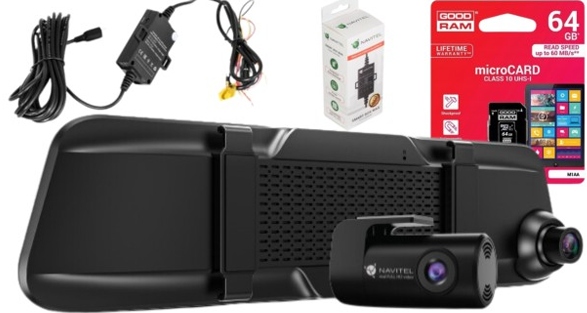 Набір NAVITEL MR750 SMART також включає задню Full HD камеру, яка дозволяє одночасно записувати події як попереду, так і позаду автомобіля. Підключивши камеру до ліхтаря заднього ходу, пристрій автоматично перемикається в режим паркування, полегшуючи маневрування на тісних парковках.