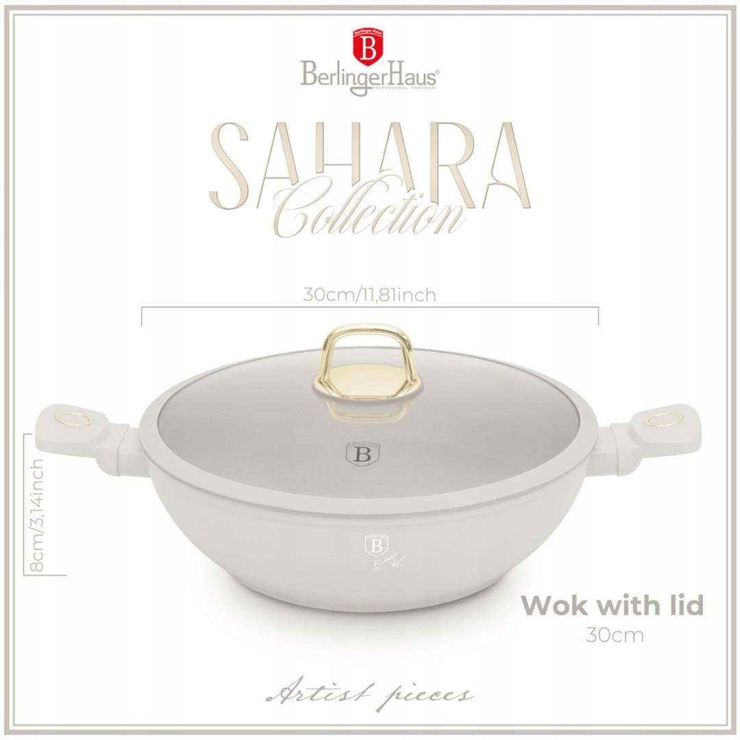 Wok Titany з обкладинкою 30 см Berlinger Haus BH-8065 Sahara-ідеально для здорового приготування їжі! 4 Цей 30-центметровий вок потужністю 4,5 літра є ідеальним поєднанням сучасного дизайну, довговічності та зручності використання. Завдяки високоякісним матеріалам та технологіям, приготування їжі стає здоровішим, швидшим та приємнішим! 🥗⏱