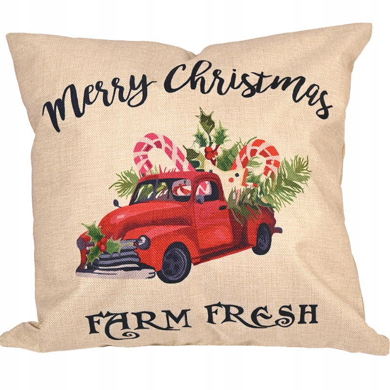 НАВОЛКА РІЗДВОВА 46х46см НАВОЛКА АВАРІЙНА машина з ялинкою