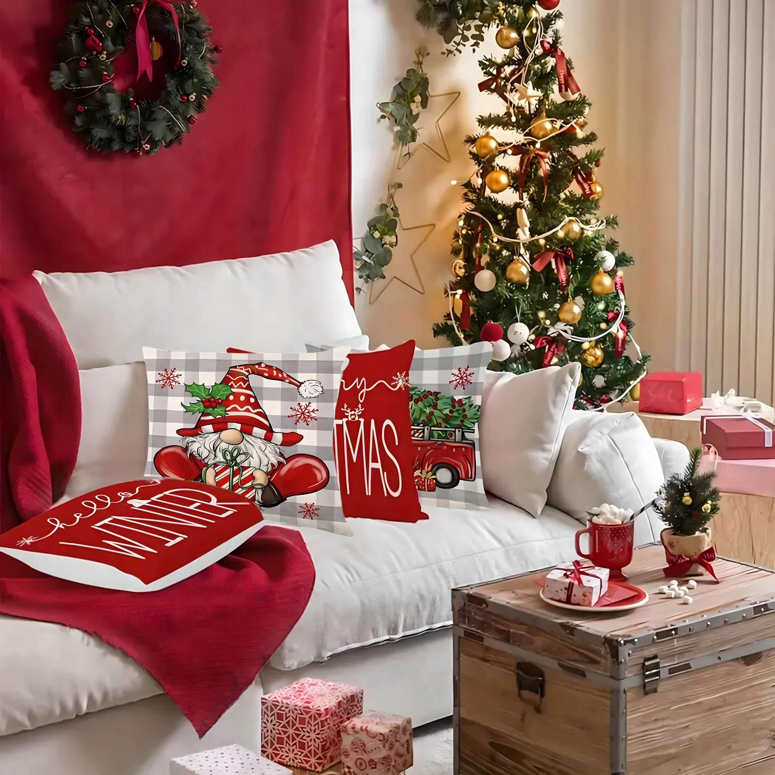 �🎄🛋️Наволочка Різдвяна Наволочка 45x45см Декоративна Різдвяна 4шт🎁🎄🛋️