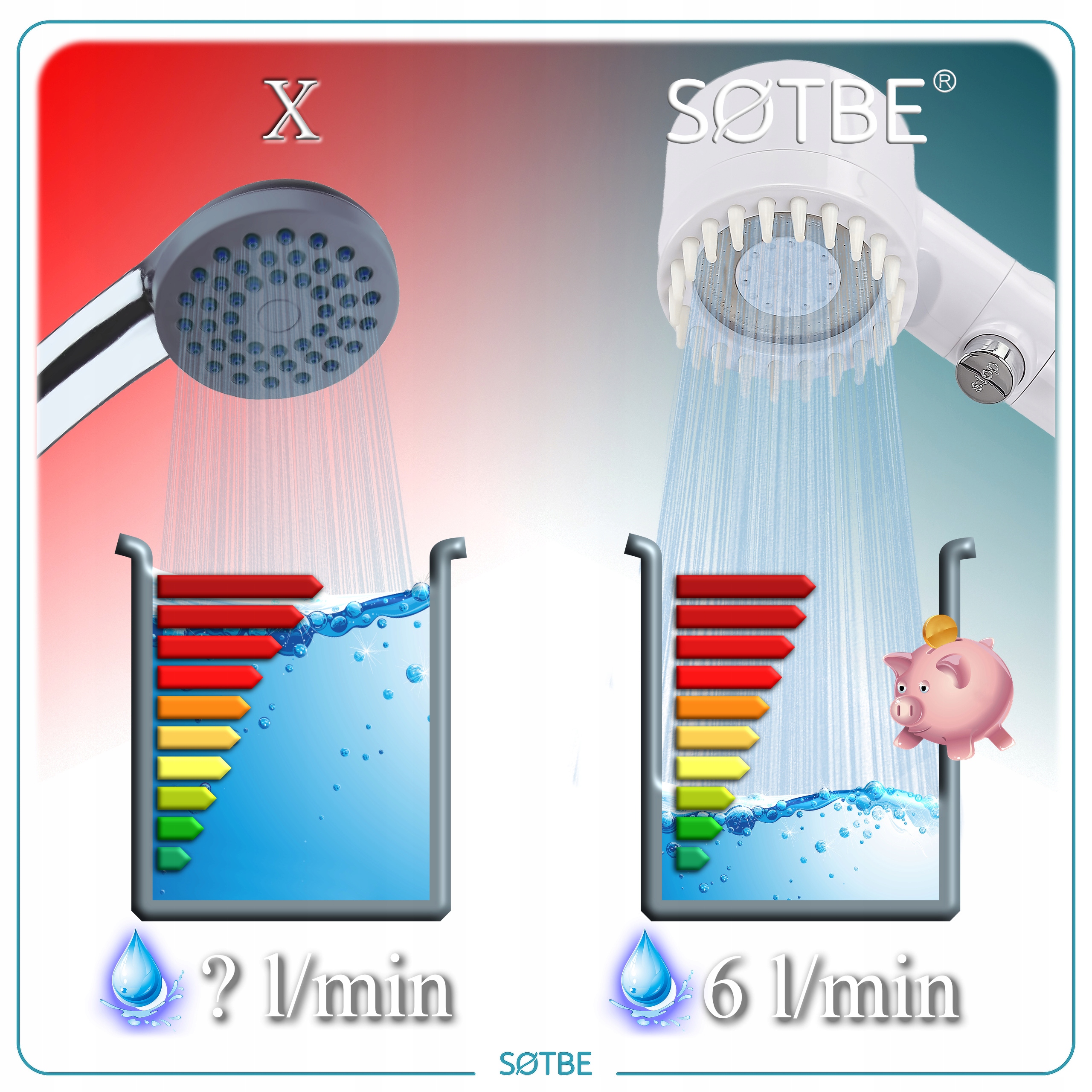 Душова лійка SOTBE пропонує три режими потоку води, які можна налаштувати відповідно до ваших уподобань.