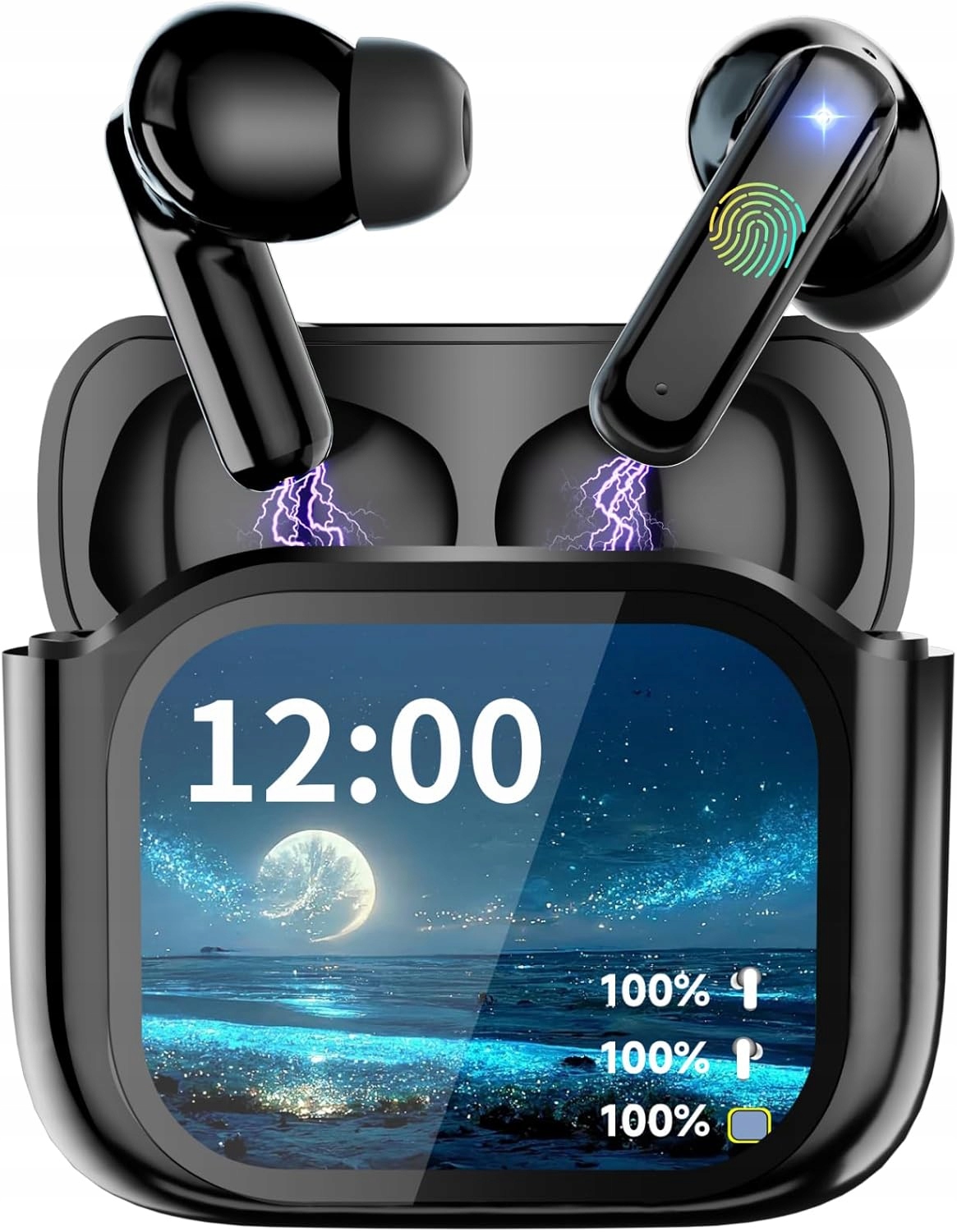 - Розумна гарнітура для перекладу постачається з багатофункціональним зарядним футляром із сенсорним керуванням.