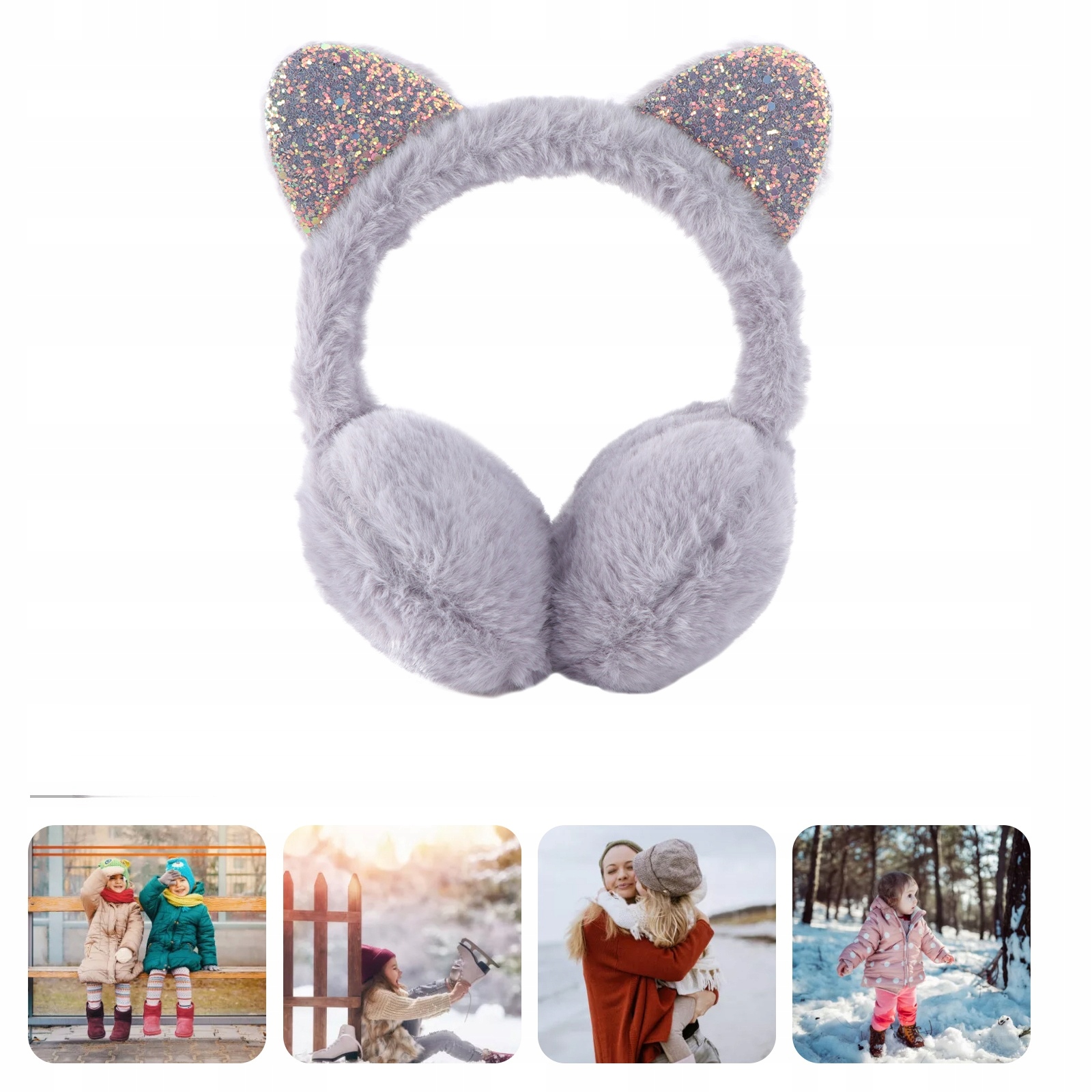 НАВУШНИКИ ДИТЯЧІ ТЕПЛІ ЛИЖНІ НАВУШНИКИ З СІРИМИ ПОРУЖКАМИ