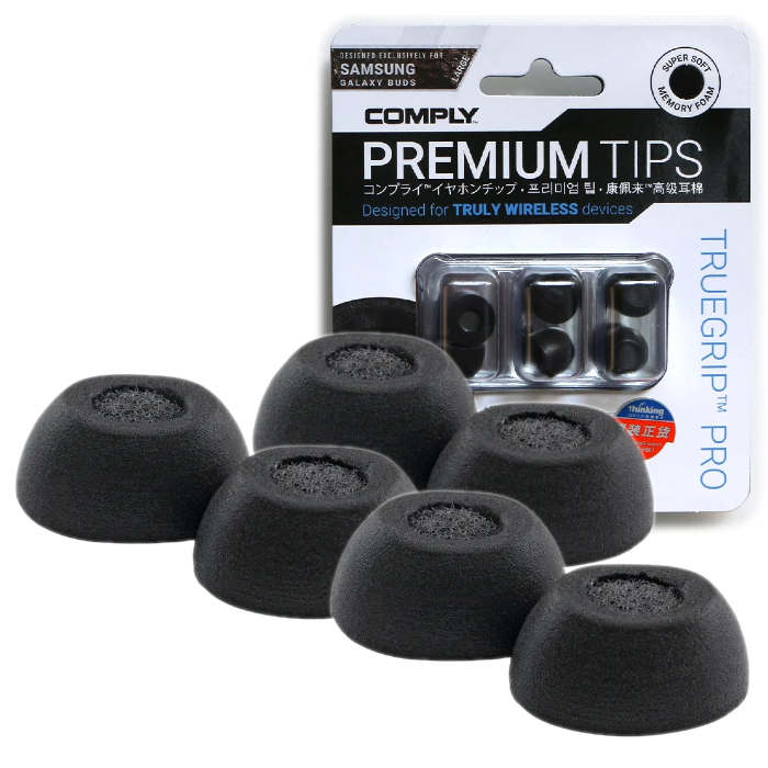 COMPLY випустила спеціально розроблені навушники із запатентованої піни з ефектом пам’яті для Samsung Galaxy Buds PRO. Піни Comply забезпечують комфорт, ідеальну посадку та значне покращення якості звуку порівняно зі стандартними силіконовими насадками. Ці навушники також гарантують, що навушники заряджаються в оригінальному зарядному футлярі.