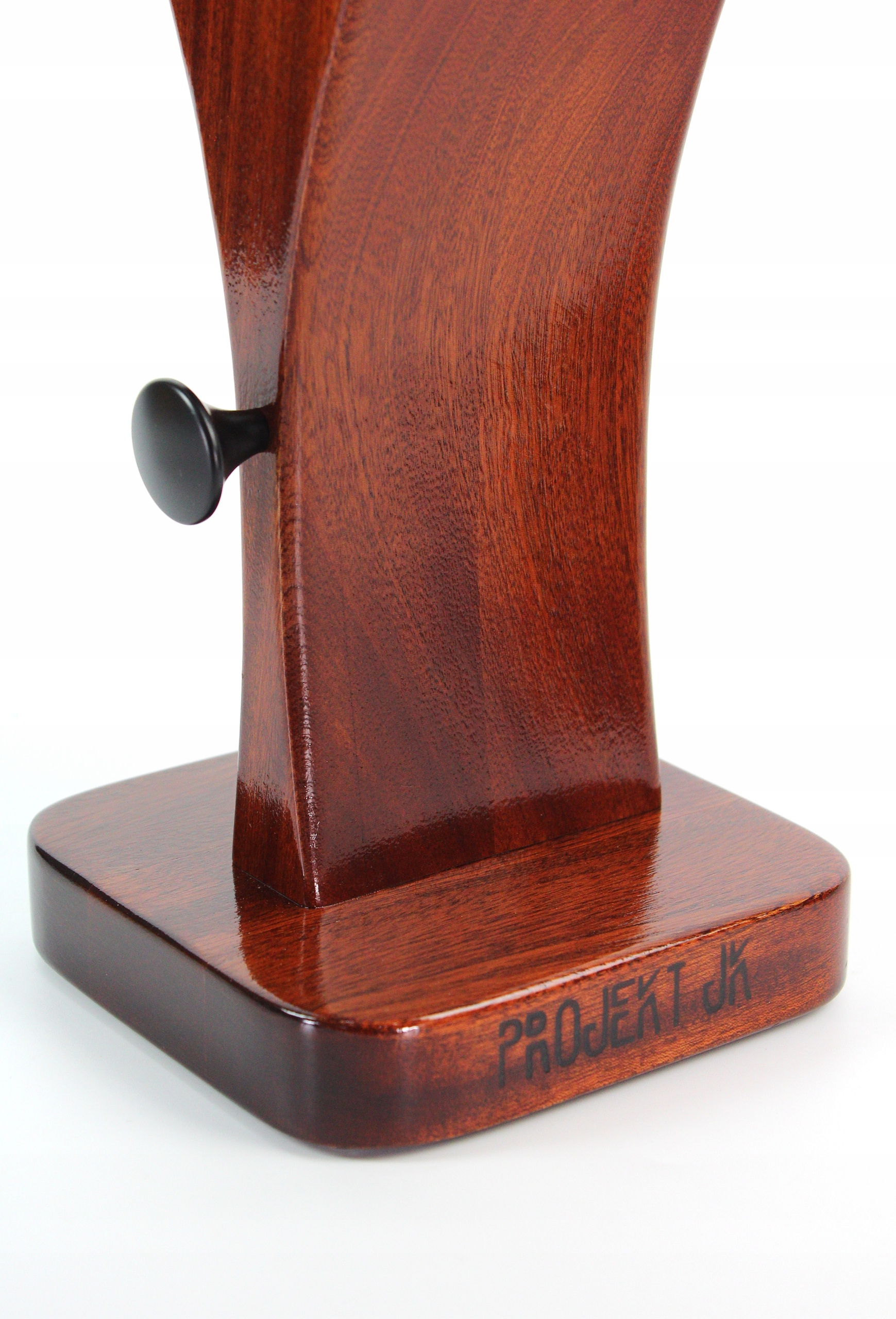 Стійка, розроблена і виготовлена мною, - це практичне рішення та унікальний дизайн. Усі розміри та форма дуже добре продумані та перевірені. Він підходить для всіх типів навушників. Він також має дві металеві ручки, на яких можна обернути кабель. Ось чому на столі завжди буде замовлення.