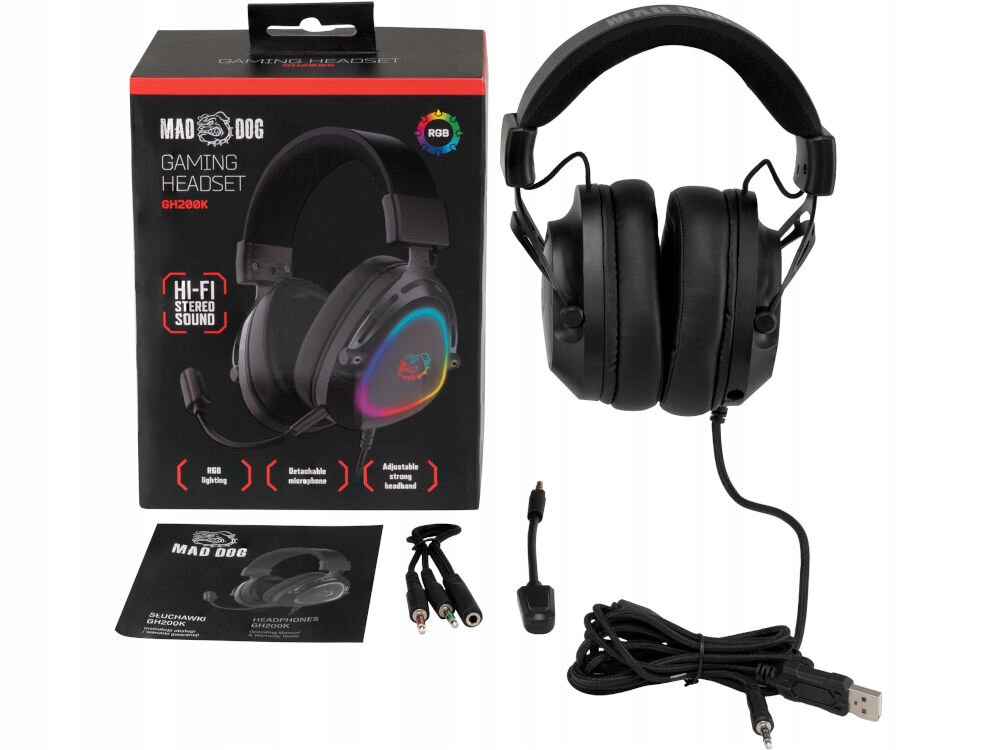 навушники Mad Dog GH200K , відключений мікрофон, 3,5 мм міні -адаптер до 2 х Джек 3,5 мм, посібник користувача з гарантійними умовами.