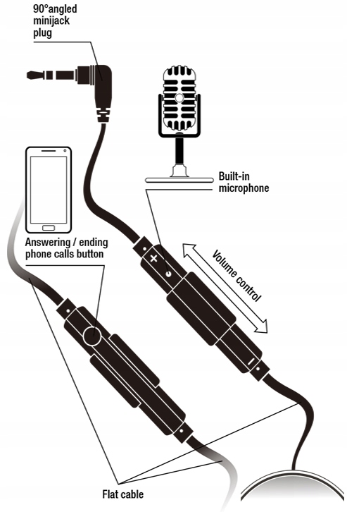 - Вбудований мікрофон, регулятор гучності та кнопка відповіді на телефоні кабель