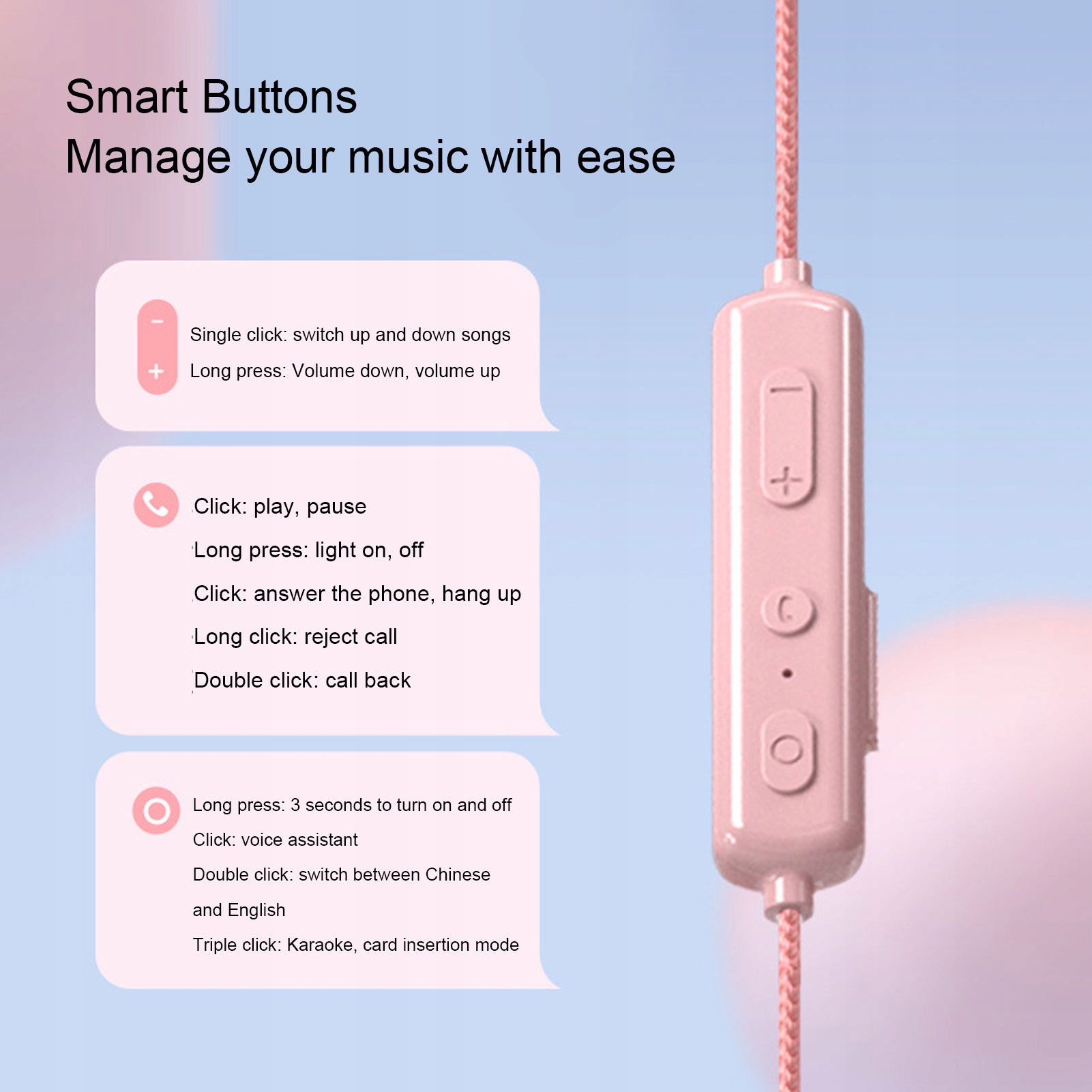 1. RGB-ПІДСВІТЛЕННЯ: ці навушники-вкладиші з шийним ремінцем мають милий котячий малюнок і RGB-підсвічування, вони стильні та красиві, ідеальний подарунок для вашого партнера, дітей і хороших друзів.