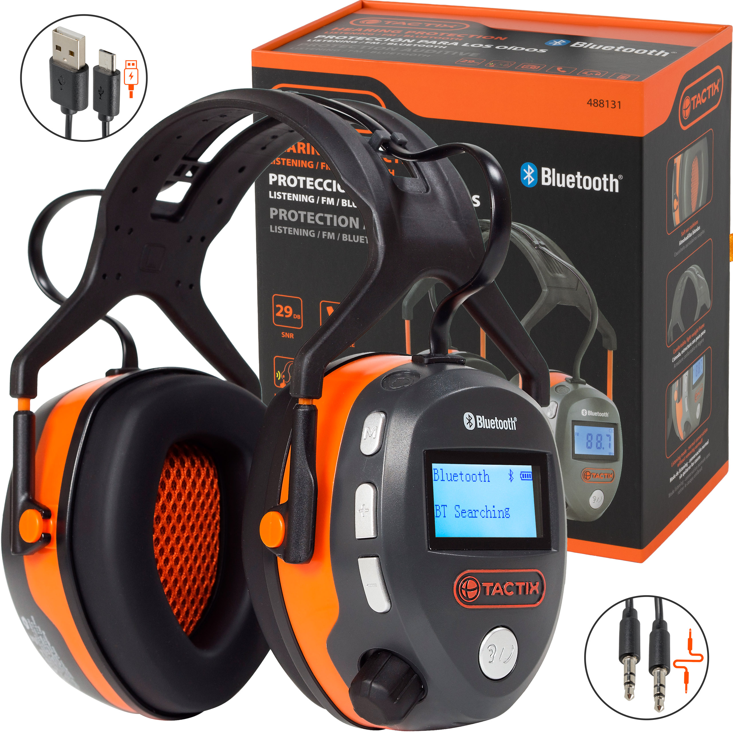 Навушники Tactix 488131 — це поєднання функцій захисних амбушур і бездротових музичних навушників з радіо. Продукт, призначений для забезпечення комфортної та безпечної роботи в місцях з підвищеним рівнем шуму. Гнучке, легке наголів’я та внутрішня частина амбушюр із м’якої піни забезпечують правильну посадку та комфорт використання навіть протягом багатьох годин. Літій-іонний акумулятор ємністю 1500 мАг забезпечує тривалий час роботи 12-28 годин