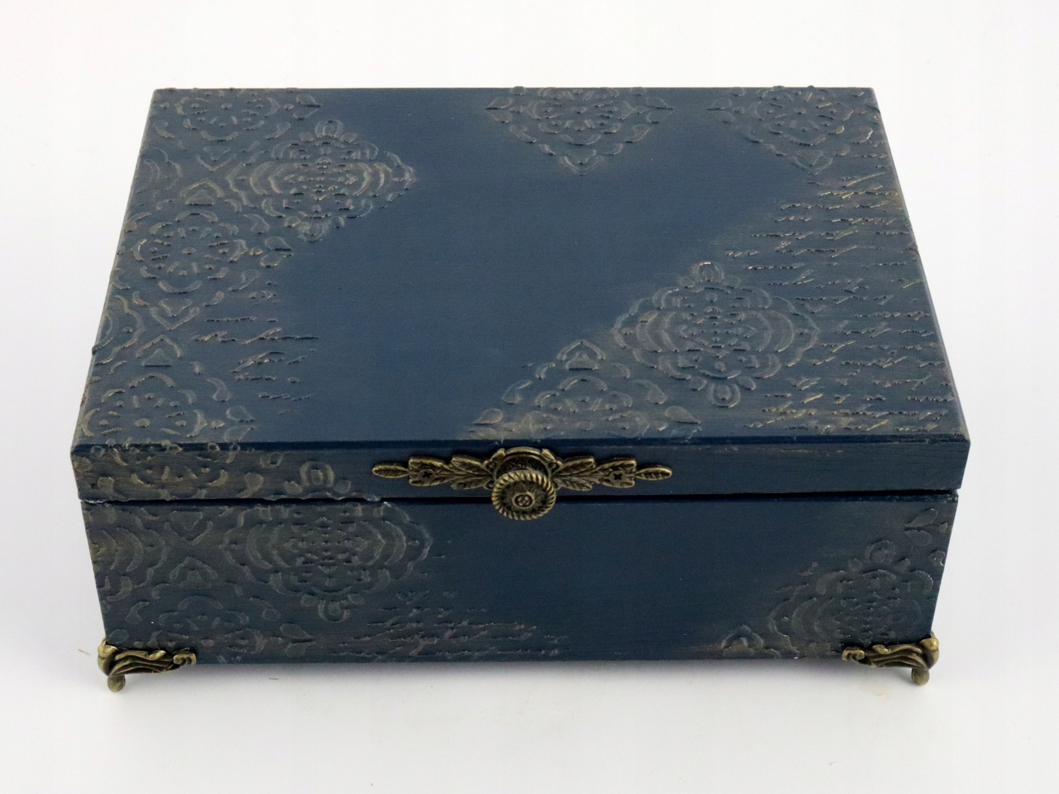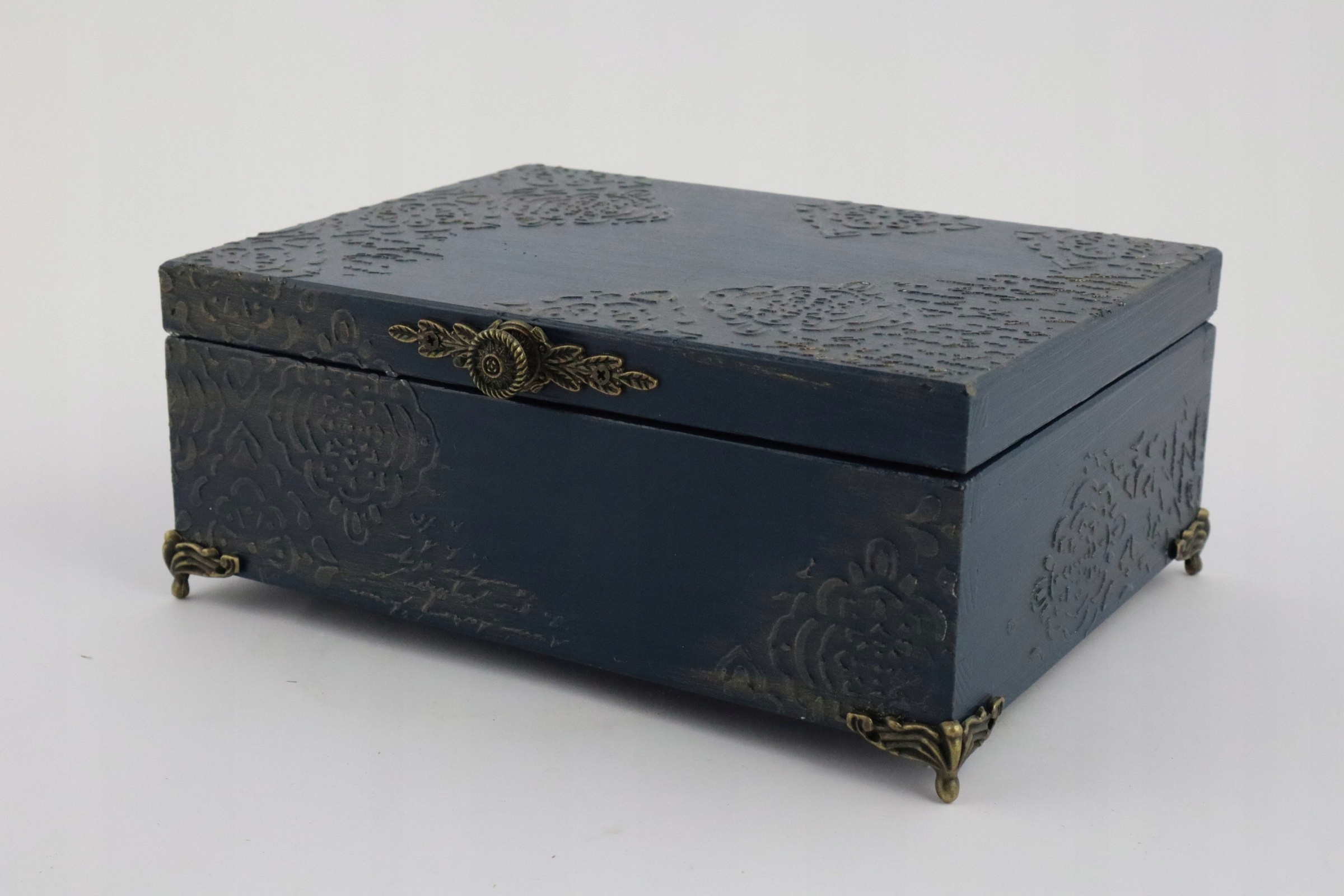 Дозвольте собі захопитися магією деталей і додайте трохи розкоші у свій дім завдяки нашій темно-синій дерев’яній коробці. Елегантність, практичність і унікальний дизайн - ви знайдете все це в одному місці.