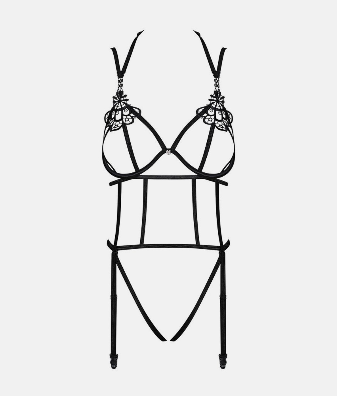 Завдяки цьому кожен хід безкоштовний, і ви можете почувати себе впевнено та комфортно. Характерні тонкі смужки, що обгортають тіло, дають цій моделі унікальний розріз. Тіло оснащене елегантною вставкою Guipure над грудьми, що дає йому стиль та клас. У свою чергу, відкритий бюстгальтер з Underwines підтримує та піднімає бюст, забезпечуючи привабливий зовнішній вигляд та комфорт протягом усього носіння. Тіло Бадосса також має відкритий крок, який є практичним рішенням, і кілька ступенів кріплення дозволяє легко адаптуватися до індивідуальних потреб.