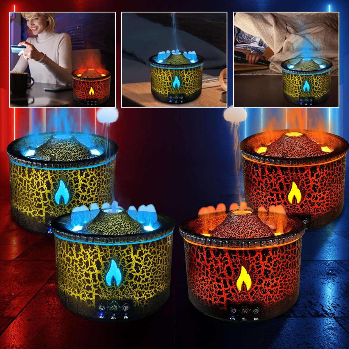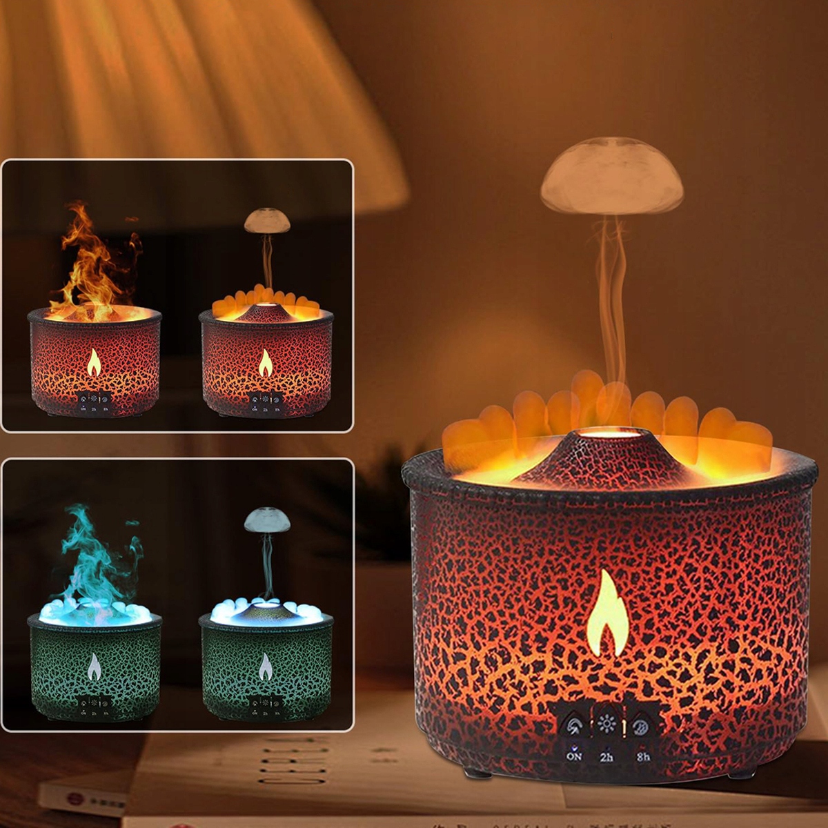 🌙 Легкий режим управління та спокійний режим експлуатації: Використовуючи доданий пульт дистанційного керування, ви можете зручно перемикатися між вогнем та вулканом та між червоним та синім світлом. Завдяки тихій роботі 30 дБ, зволожувач не заважає миру, створюючи атмосферу, що сприяє відпочинку, навчанню, роботі та мирному сну. Крім того, побудований таймер дозволяє встановити пристрій на 2 або 8 годин роботи, а функція автоматичного комутації за відсутності води забезпечує безпеку.