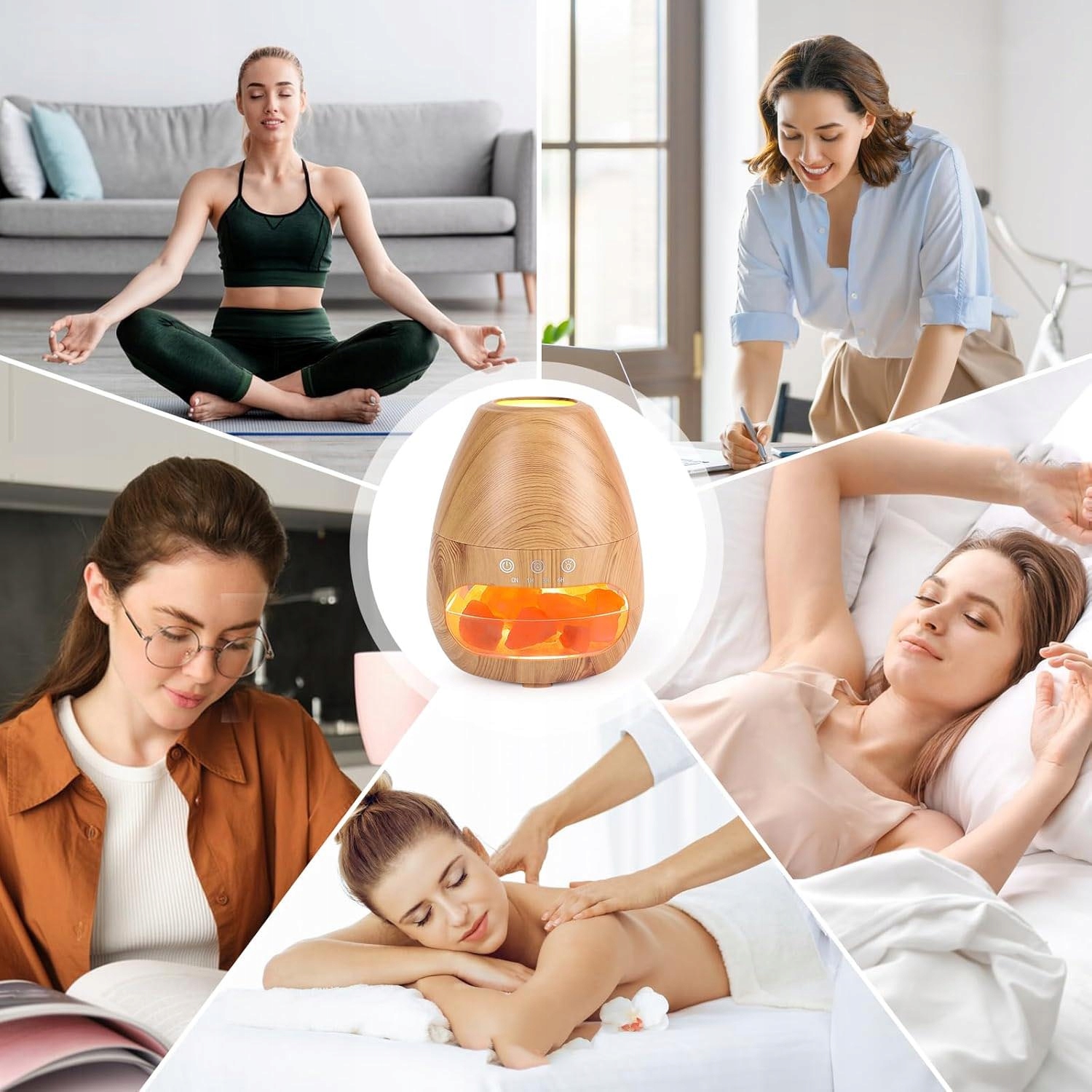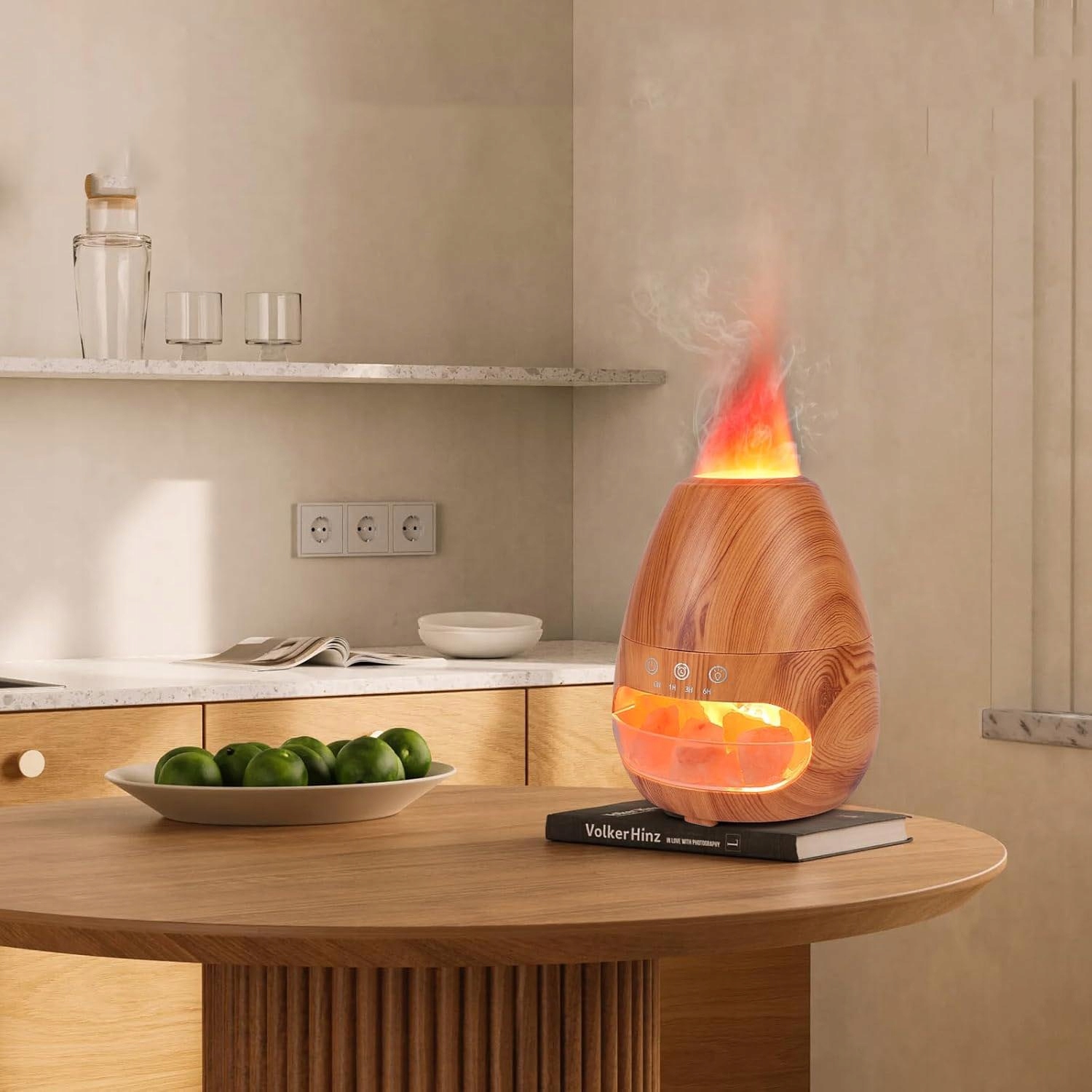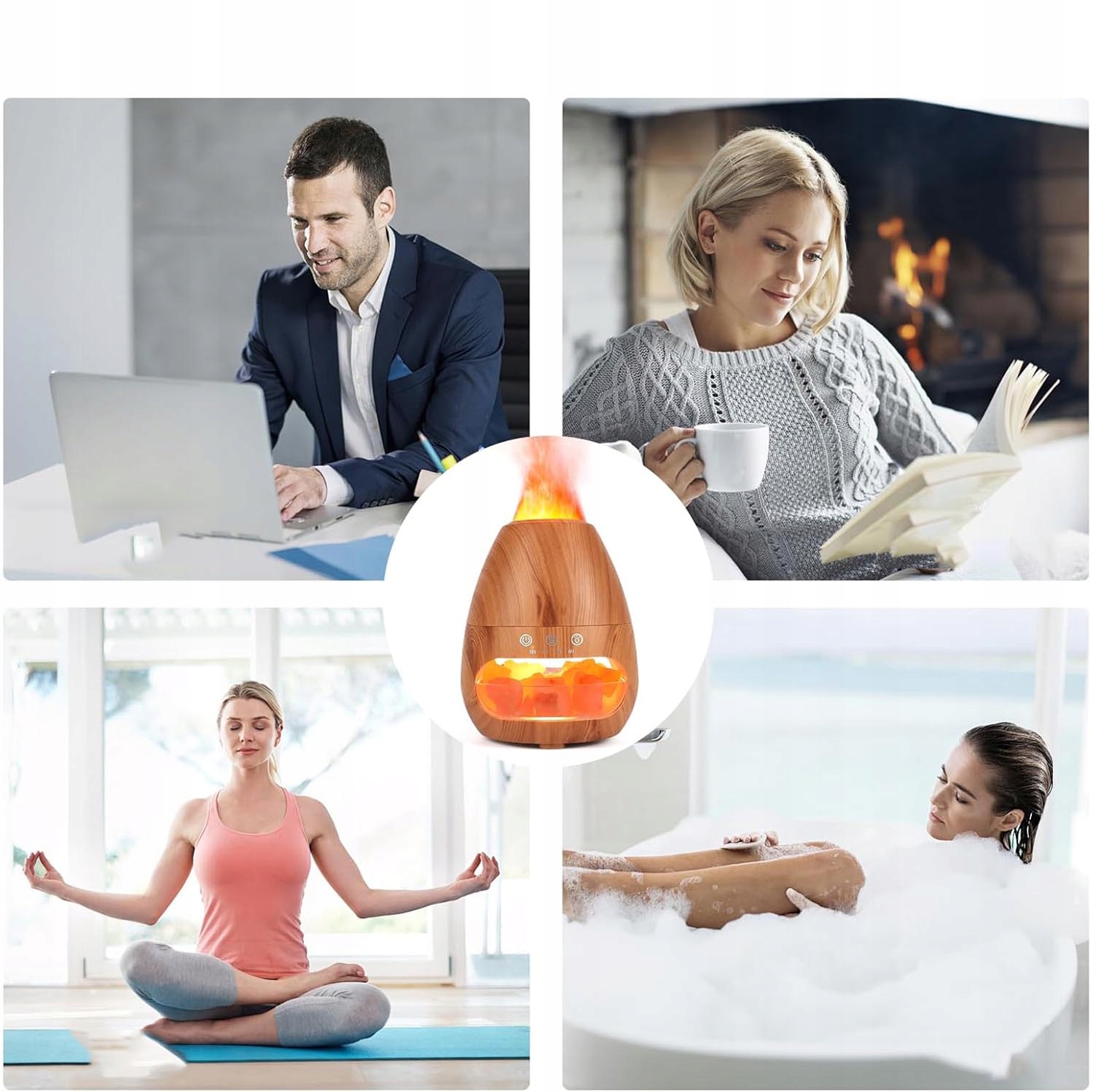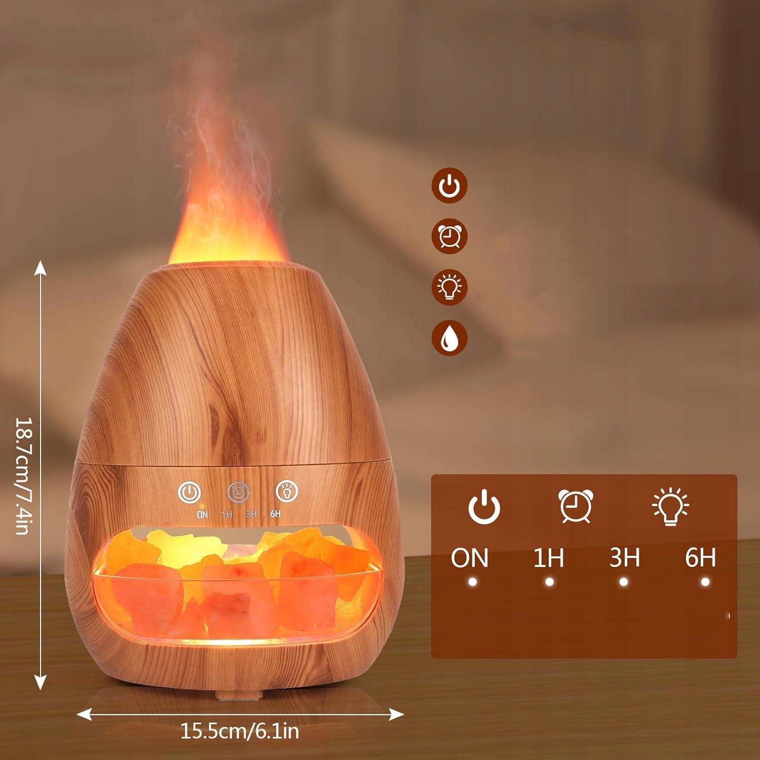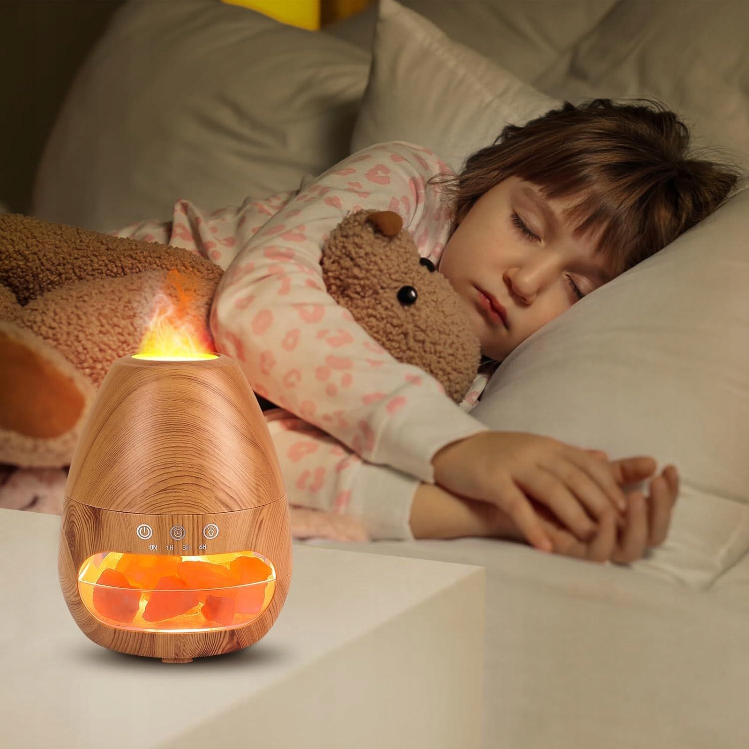 NAWILŻACZ POWIETRZA KOMINEK LAMPKA NOCNA EFEKT PŁOMIENIA LED DYFUZOR + SÓL
