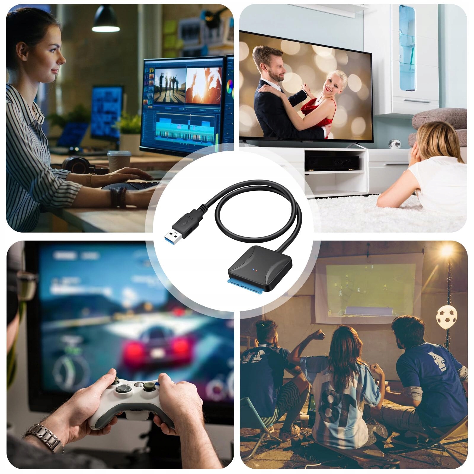Легко підключайте 2,5-дюймові SSD/HDD і 3,5-дюймові жорсткі диски до ПК, ноутбуків, консолей PS4, телевізорів і маршрутизаторів для передачі даних або розширення пам’яті. Ідеально підходить для завантаження старих жорстких дисків/SSD та відновлення важливих файлів із пошкоджених комп’ютерів.