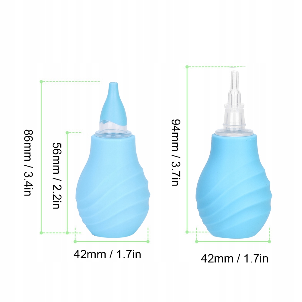 - Розмір назального аспіратора: прибл. 86 x 42 мм/3,4 x 1,7 дюйма