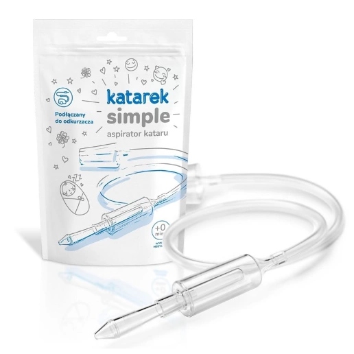 Аспіратор Katarek Simple підключається до пилососа, завдяки чому він використовує рівномірну та потужну силу всмоктування, створювану пилососом. Ця унікальна функція дозволяє ефективно «прибрати» нежить навіть з глибоких відділів носа дитини. Аспіратор має однорідну незнімну камеру з резервуаром для секрету та редуктором сили всмоктування, що забезпечує безпеку та м’якість під час використання.