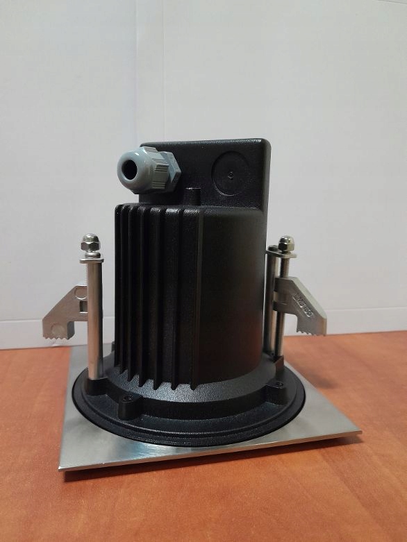 Компактний, вбудований зовнішній світильник квадратної форми. Легко встановити та замінити. Матеріал нержавіюча сталь Світильники призначені для внутрішнього і зовнішнього використання в комерційних і громадських приміщеннях в якості декоративних стельових світильників. Ця лампа повністю водонепроникна за стандартом IP 65, що означає, що вона може бути піддана впливу елементів як зверху, так і знизу. Основними особливостями є низький рівень відблисків і зниження вимог до обслуговування при використанні світлодіодів. Світильники мають високоякісне світлодіодне джерело з низьким енергоспоживанням і тривалим терміном служби 60 000 - 80 000 годин. Світильник оцінюється як клас I із вбудованим високопотужним світлодіодним драйвером і клас II при використанні дистанційного світлодіодного драйвера. Литий під тиском алюмінієвий корпус із низьким вмістом міді з хімічно хромованим захистом перед порошковим покриттям для високої стійкості до корозії. Передня рама з товстої нержавіючої сталі 304. Шурупи з нержавіючої сталі 316. Кабельний ввід PG-9