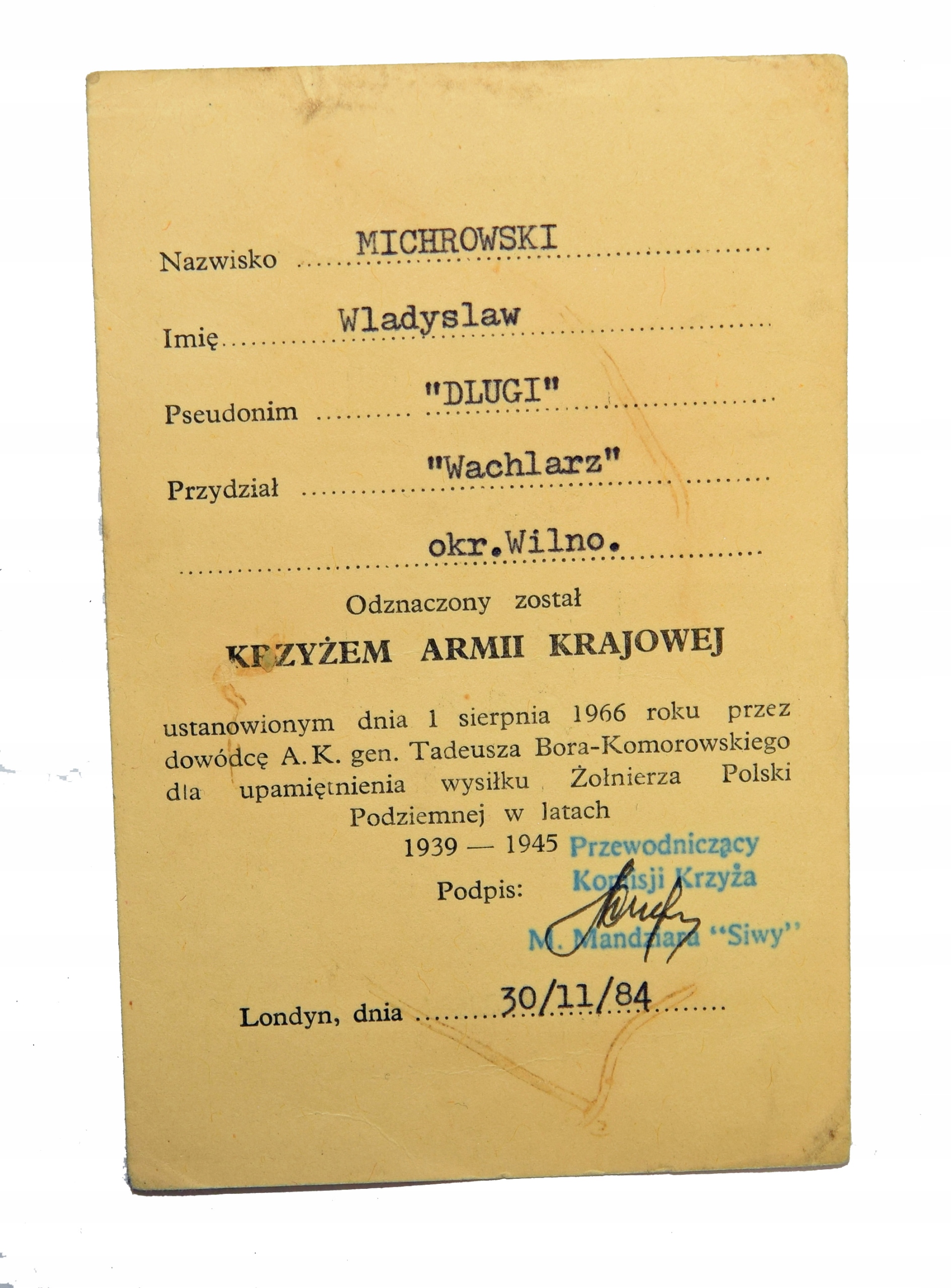 НАЗНАЧЕННЯ - Ветеран Армії Крайової Фан Вільнюс, рідкісні нагороди