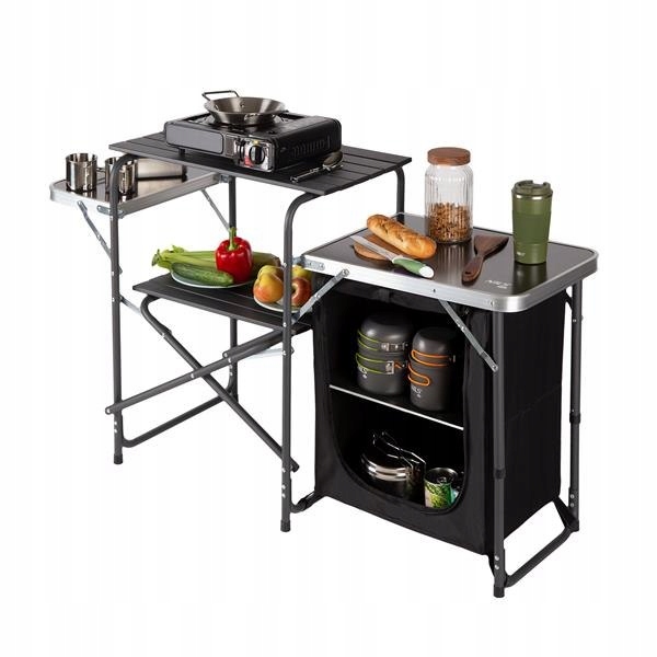 Це унікальне рішення для любителів кемпінгу, які цінують комфорт і функціональність. Міцна конструкція шафи в поєднанні з елегантним дизайном робить її обов’язковою для кожного мандрівника. Відкидні бічні стільниці пропонують простір не тільки для приготування їжі, але й для її сервірування. Завдяки відкритим полицям і місткій шафі на блискавці зберігати продукти не тільки зручно, але й безпечно. Коли вам потрібно більше місця, стільниці можна легко скласти, що робить шафу ще більш компактною. Незалежно від того, чи плануєте ви шашлик, пікнік чи інтимну зустріч на природі, наша туристична шафа з кришкою підійде ідеально.