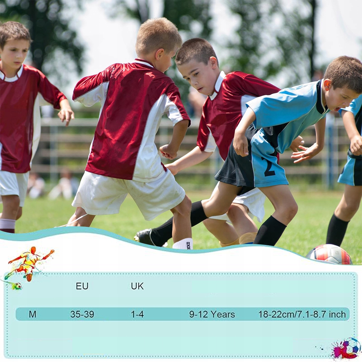 Що ви отримаєте: ви отримаєте 3 пари дитячих футбольних шкарпеток, з хорошими розширеннями, які адаптуються до ваших ніг. Вони ідеально підходять для спорту або щоденного носіння. Розмір М: 35-39 / 9-12 років.