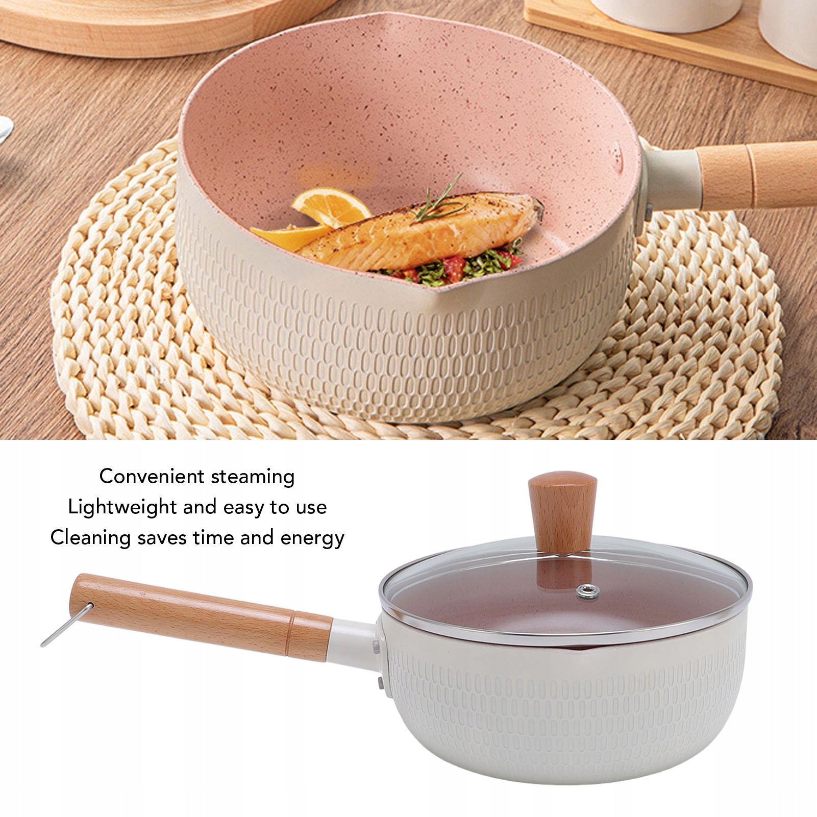 Функція: 1. Поуані без палички: він обережно має палицю, що перешкоджає їжі для сковороди. Це не тільки спрощує очищення, але й зменшує споживання нафти, сприяючи більш здоровому досвіду приготування їжі.