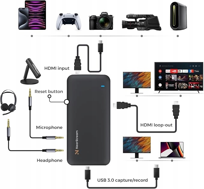 Високоякісна карта захоплення HDMI USB 3.0, призначена для запису та потокового передавання відео з високою роздільною здатністю. Ідеально підходить для прямих трансляцій, запису ігрового процесу, створення контенту для YouTube, Twitch і проведення відеоконференцій.