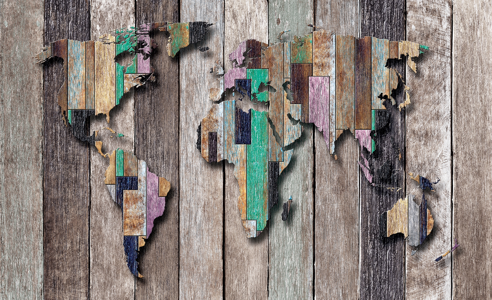Недольтійна карта настінної фрески World Wood 3d 104x70.5