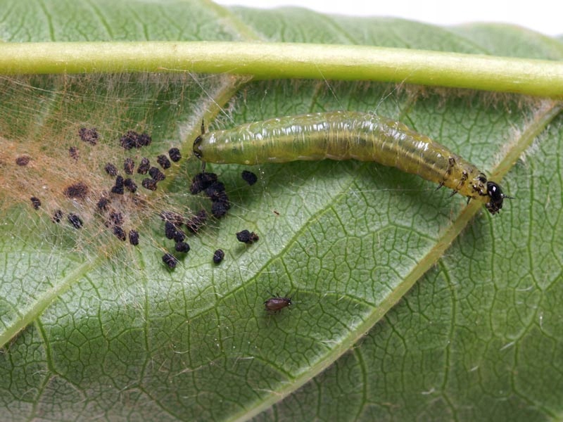 Невдовзі після вилуплення вони починають відгризати зовнішню оболонку листя, а потім і всю листкову пластинку, залишаючи лише нерви та багато екскрементів.