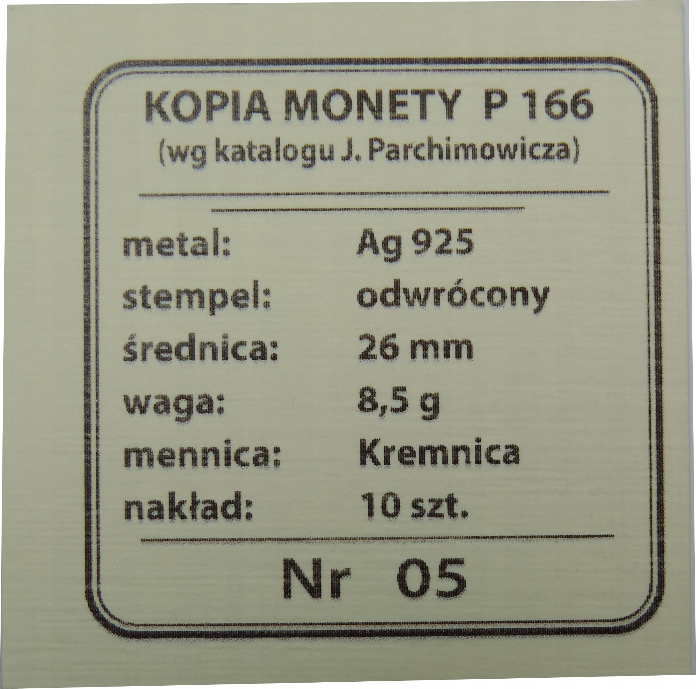 Просматривая «НЕФРИТ - РЕПЛІКА - КОПІЯ ДОВОЄННОЇ ПРОБНОЇ МОНЕТИ - СРІБЛО 925 ПРОБИ -OU1935», вы можете быть уверены, что данный товар из каталога «Копии и репродукции» будет доставлен из Польши и проверен на целостность. В цене товара, указанной на сайте, учтена доставка из Польши. Внимание!!! Товары для Евросоюза, согласно законодательству стран Евросоюза, могут отличаться упаковкой или наполнением.