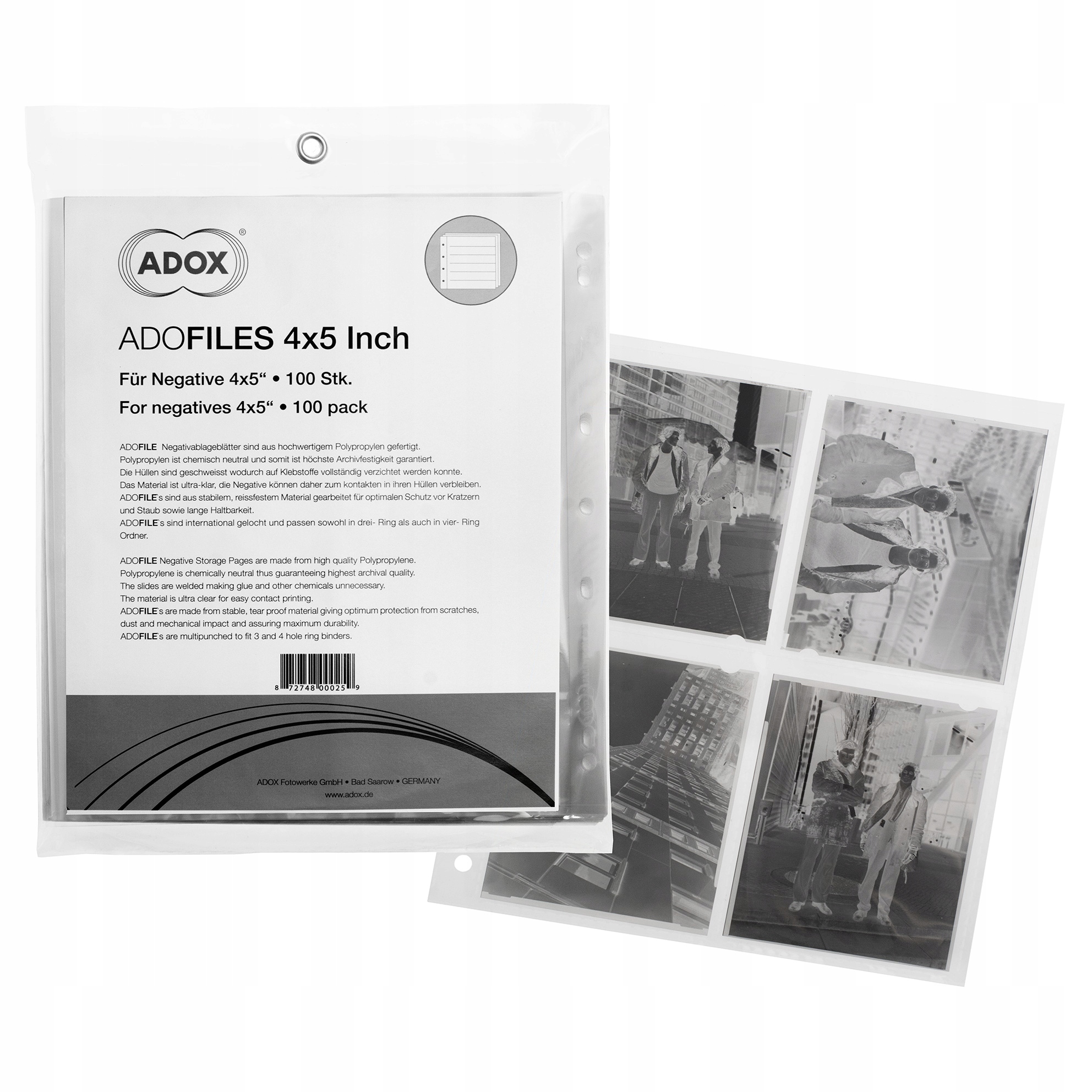 Поліпропіленові чохли Adox Adofile для негативів 4x5"