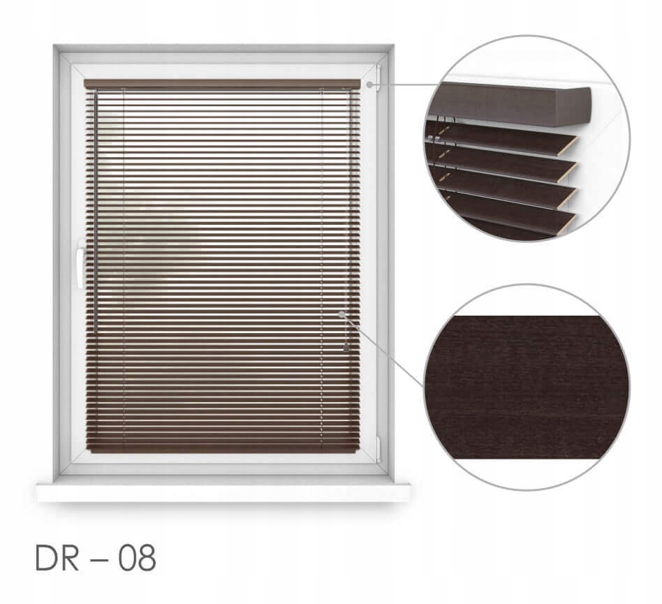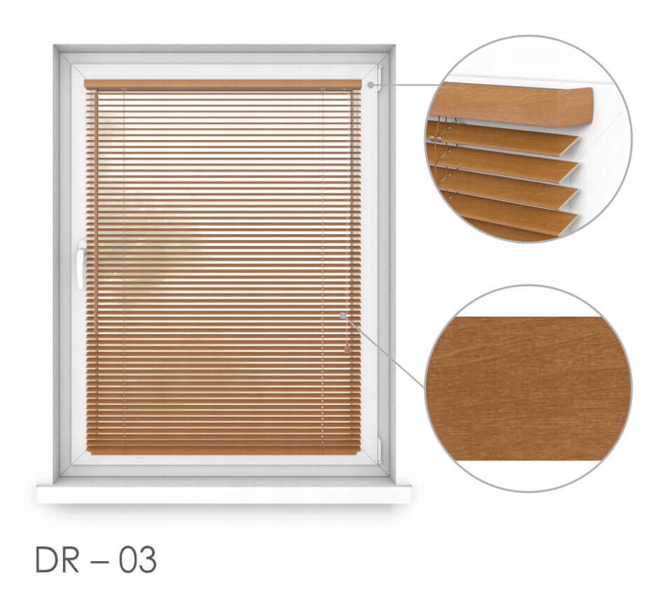 дерев'яні жалюзі доступні в нашій пропозиції ретельно виготовлені та мають елегантні оздоблення у вигляді високої маски жолоби та смачної ручки. Клієнти можуть вибирати з багатьох кольорових версій. Більше того - сама дерев’яна сліпа дозволяє ідеально відповідати інтенсивності світла, що досягає внутрішнього простору залежно від кута настройки щита .