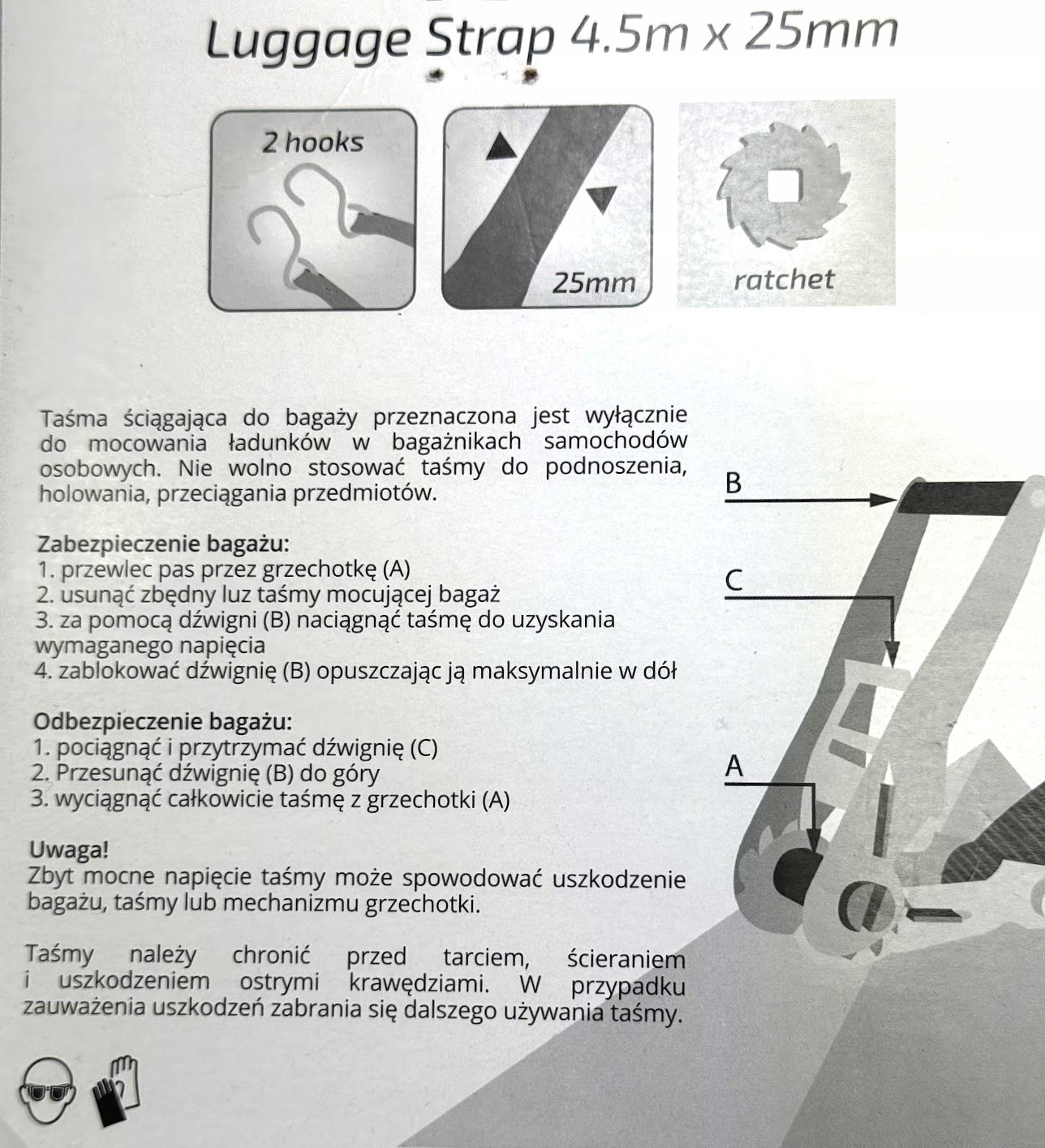 Оплачивая «Нейлоновый ремень для транспортировки багажа с пряжкой для крепления багажа, 5 м», вы можете быть уверены, что данный товар из каталога «Ссылки, транспортные ремни» будет доставлен из Польши и проверен на целостность. В цене товара, указанной на сайте, учтена доставка из Польши. Внимание!!! Товары для Евросоюза, согласно законодательству стран Евросоюза, могут отличаться упаковкой или наполнением.