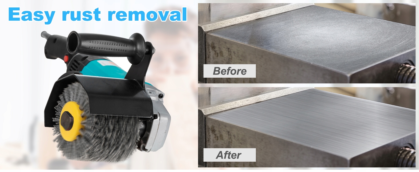 Колеса полірувальної щітки для зняття задирок і очищення придатні для зняття задирок і іржі. Зняття задирок та миття дерев'яних підлог. Використовуйте машину для малювання, щоб відкрити фарбу для видалення задирок з дерева, меблів, меблів з червоного дерева.