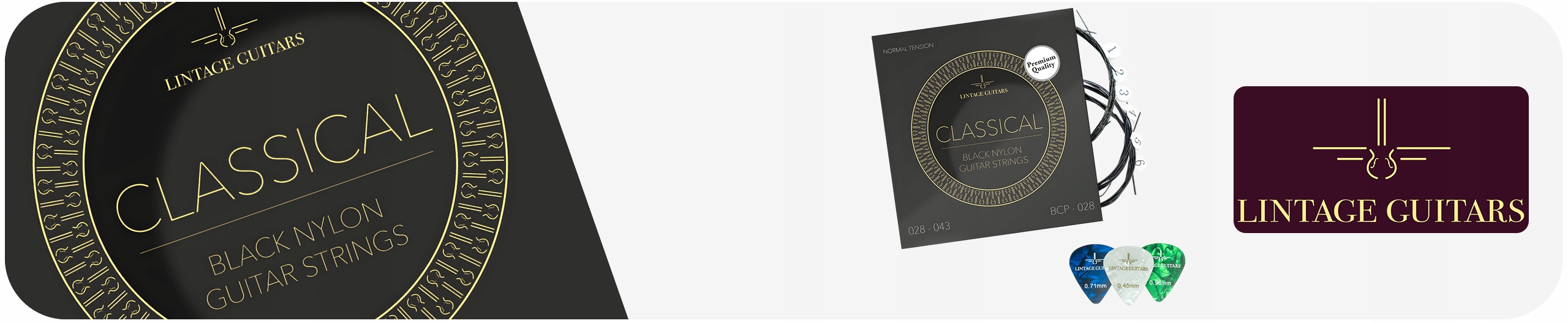 Нейлонові чорні струни для класичної акустичної гітари високої якості + 3 медіатори
