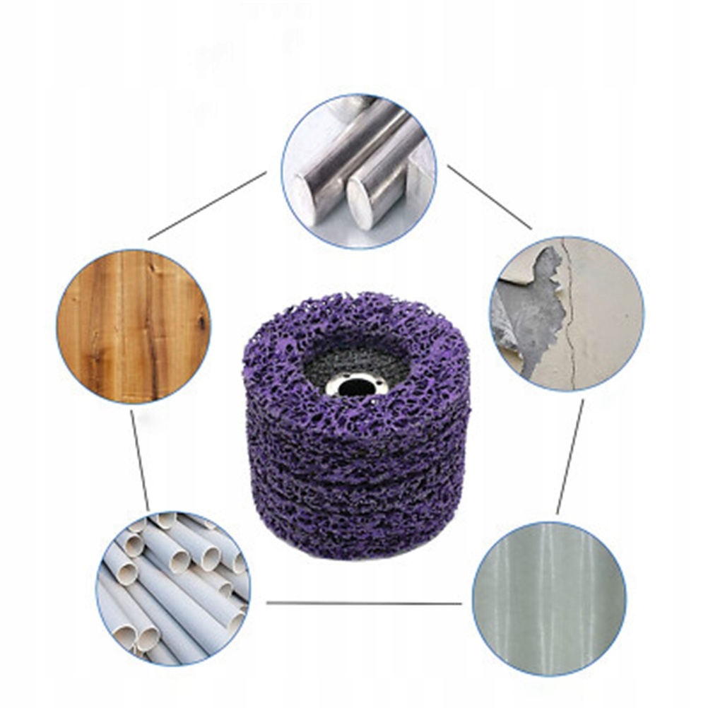 для агресивного очищення іржі та очищення зварних швів, видалення старих фарб та фарб для очищення бетону, каменю. Структура цього матеріалу не змінюється під впливом роботи, що дозволяє його неодноразово використовувати та постійну ефективність.
