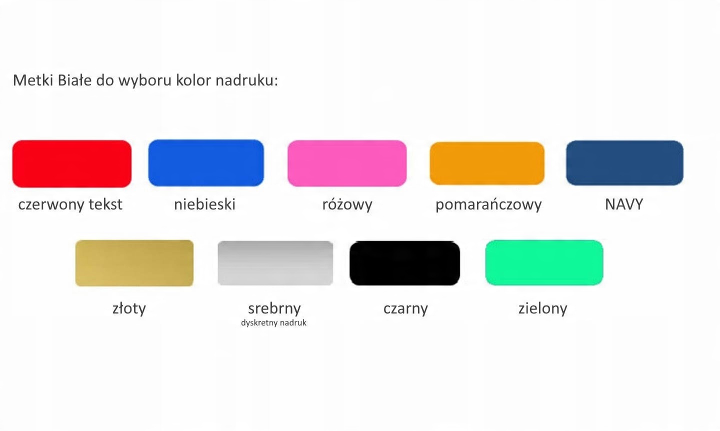 - Напис: ОДИН КОЛІР, можна нанести будь-який напис до 25 символів в рядку до 3-х рядків на етикетці (теги без логотипу)