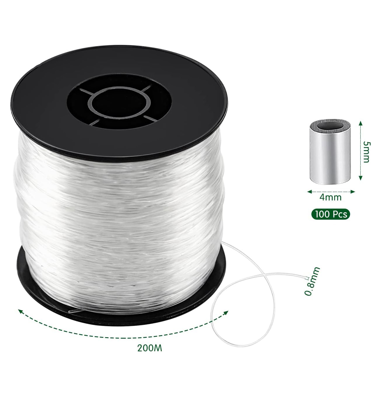 Прозора риболовецька лінія виготовлена з нейлону, що характеризується хорошою міцністю та стабільністю. Використовуючи цей нейлоновий кабель, ви можете поєднувати та призупинити різні предмети. 4 При необхідності його можна вирізати та використовувати.