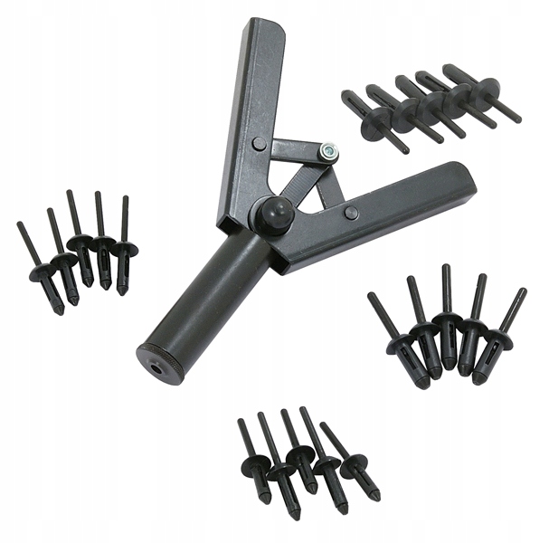 Заклепувальник для пластикових заклепок із набором із 40 заклепок чотирьох розмірів використовується для кріплення пластикових планок, дверних планок, колісних арок, кришки двигуна, автомобільної оббивки, бамперів та делікатних елементів навколо двигуна та салону автомобіля. p>