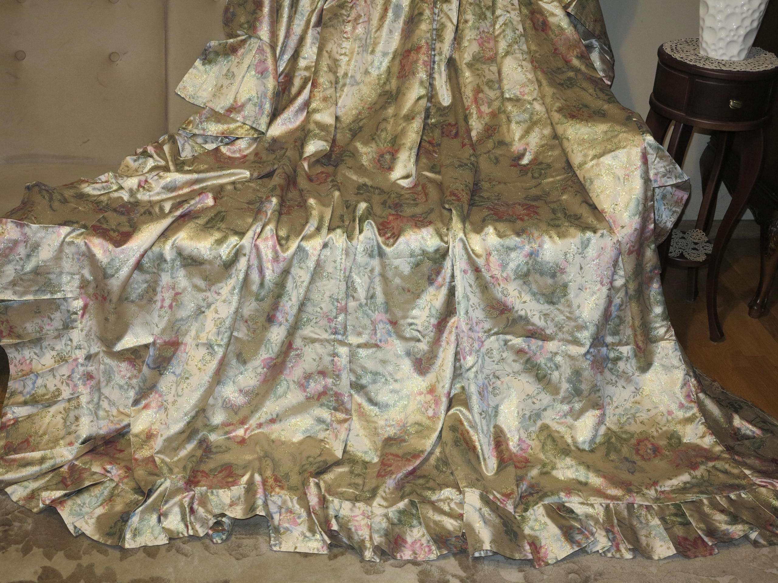 Предметом аукціону є надзвичайно красиве англійське покривало з воланами, що переливається багатою золотою ниткою. Покривало б/у, в дуже хорошому стані та якості.