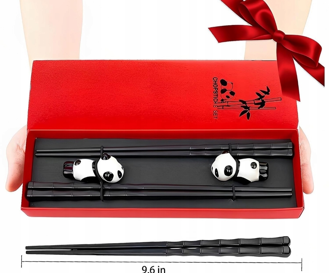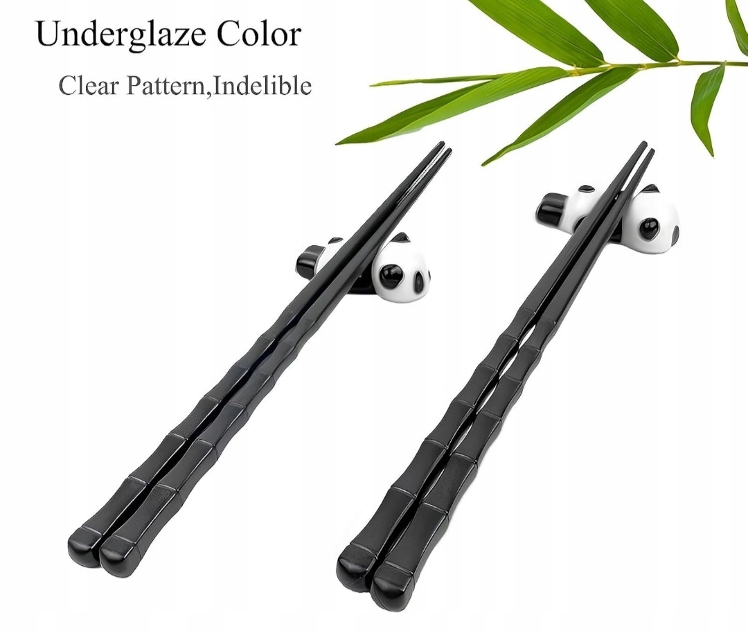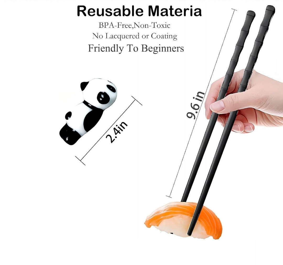 нейпохічні 2 пари паличок, їжу тіл з 2 китайськими ручками панди та упаковкою, паличками, придатними для миття в посудомийній машині, ідеально підходить для суші, азіатських, 24 см