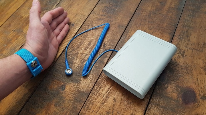 3. Після години використання пристрій потрібно зарядити - для цього підключаємо його до зарядної станції. Повна зарядка займає три години. Після закінчення цього часу ми відключаємо його і можемо знову використовувати протягом години. Ми можемо залишити нейтралізатор підключеним на ніч, він зарядиться стільки, скільки йому потрібно. Намагаємося не торкатися пальцями металевої пластини після зарядки, щоб уникнути непотрібної розрядки пристрою. Після від’єднання негайно надіньте його на руку.