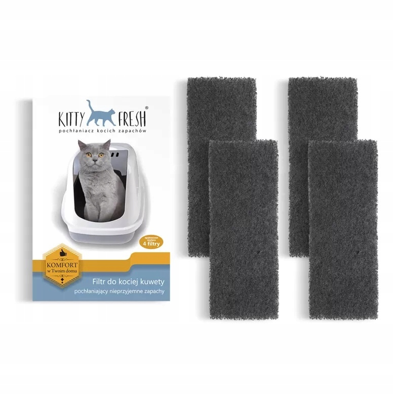 Все, що вам потрібно зробити, це вийняти фільтр з упаковки та помістити його в ящик для сміття. В упаковці 4 вугільні фільтри розміром 6×18 см, але фільтри можна вільно розрізати для отримання потрібного розміру. Поглинач запахів KittyFresh - це безпечний продукт, нетоксичний для природного середовища, людей і тварин.