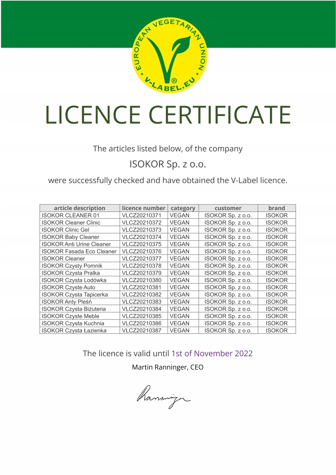 Ефективна спеціальна рідина, що складається з 100% натуральних інгредієнтів. Видаляє бруд і запахи сечі, фекалій і блювотних мас. Він має європейський знак якості V-Label для веганських продуктів.