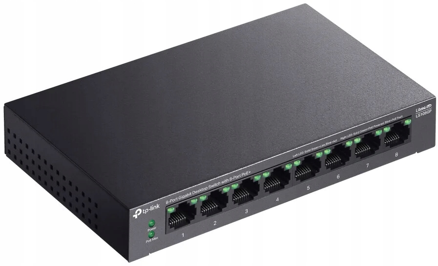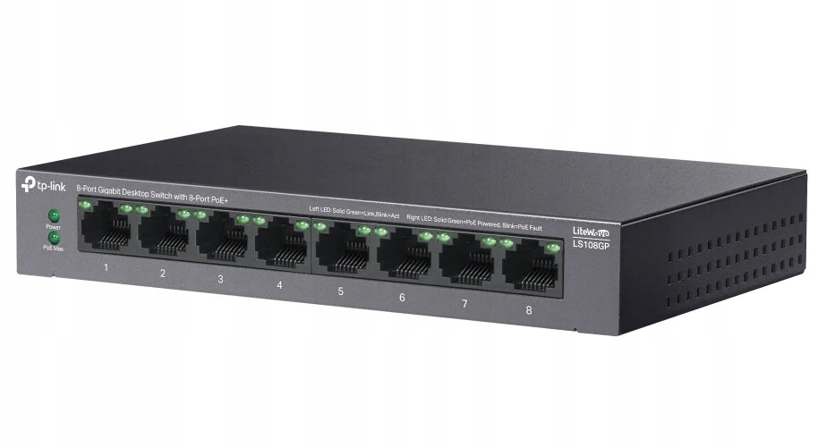 перемикач TP-Link LS108GP Gigabit Ethernet, 8 портів, функція POE