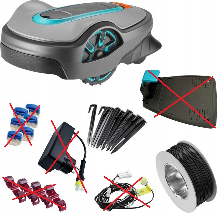 В комплекті з Сільний робот GARDENA SILENO LIFE 1250 крім док-станції також є обмежувальний дріт довжиною 250 метрів і 300 штук шпильок.