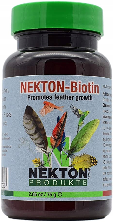 НЕКТОН-Біотин - спеціальний препарат для росту пір'я та слід завжди використовувати у разі дефектів або пошкодження оперення через дефіцит поживних речовин. Багаторічний досвід дозволив створити ефективний препарат, що містить амінокислоти (аргінін, метіонін, лізин), вітамін А, вітамін Е та біотин. Окрім вищевказаних речовин, НЕКТОН-Біотин також містить 10 важливих вітамінів, 6 мікроелементів, кальцій та інші важливі інгредієнти, корисні для здоров'я птахів.