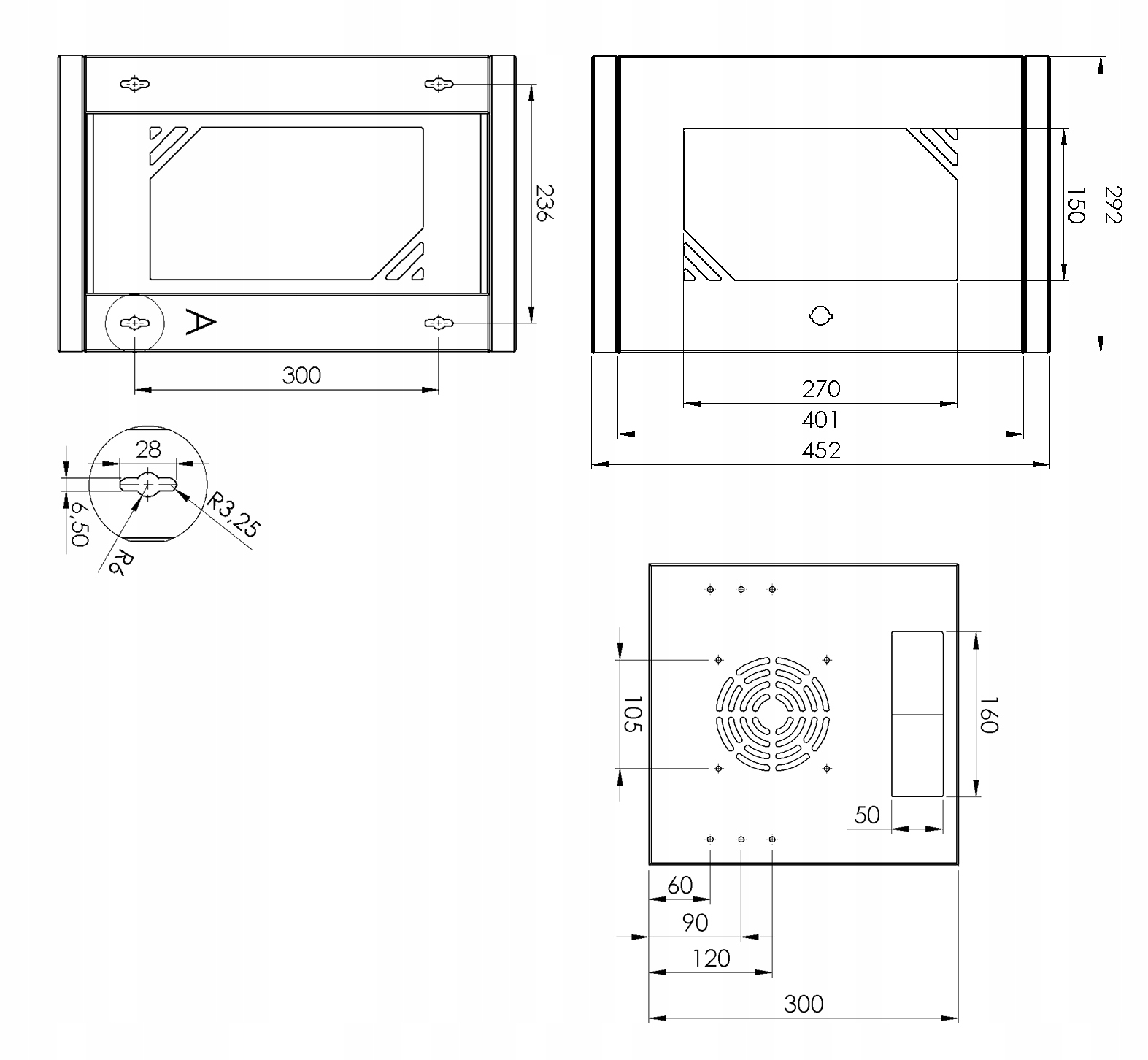- прибл. 60 мм у його передній частині - щоб безпечно розмістити, наприклад, Ethernet або волоконно-оптичні роз'єми). облаштування її внутрішнього простору.