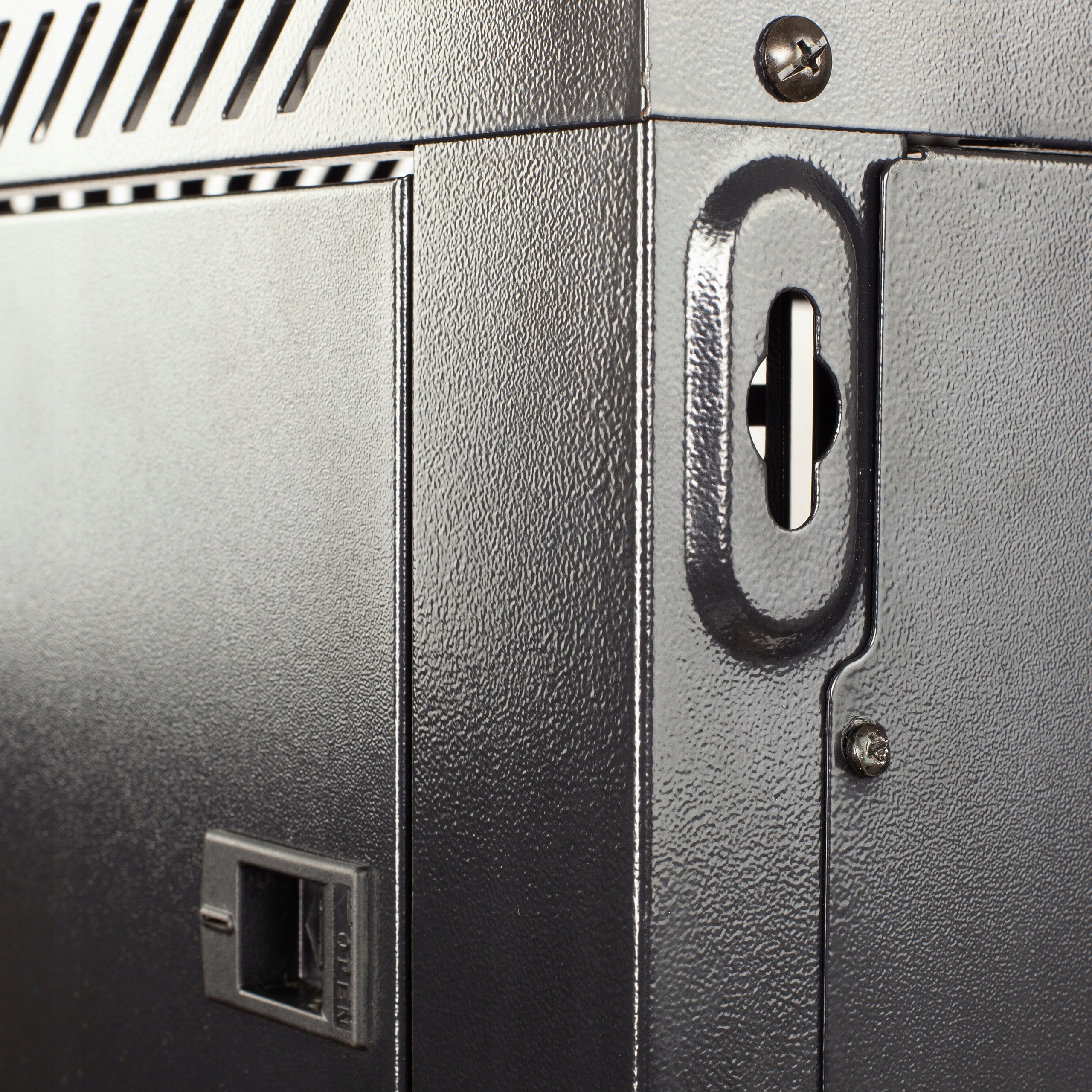 - Бічні сторони відкриваються засувками (і додатковим замком, доступним для придбання), що забезпечує доступ з усіх сторін .