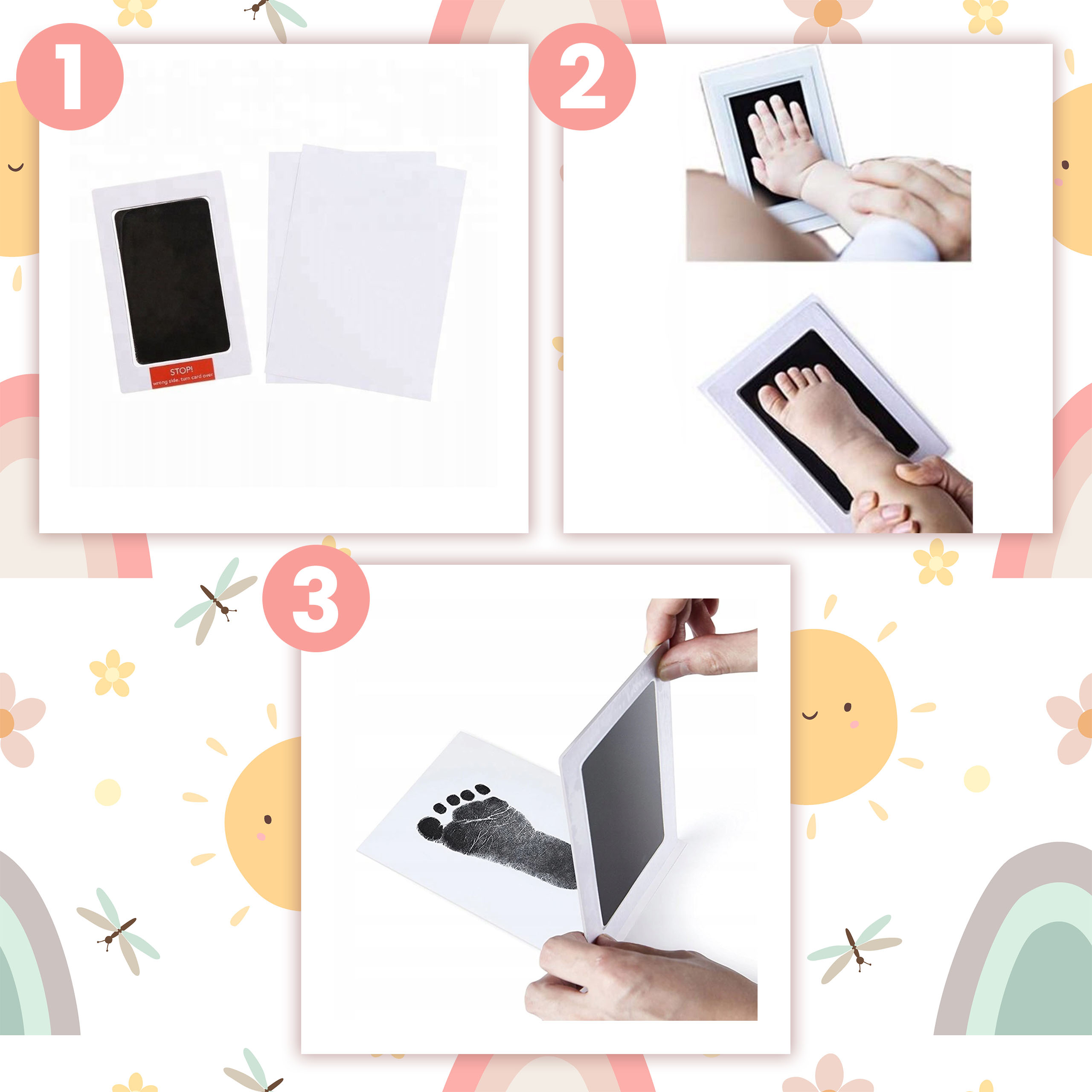 ✅ Зручне використання - просто притисніть руку чи ногу дитини до чорнильної подушечки