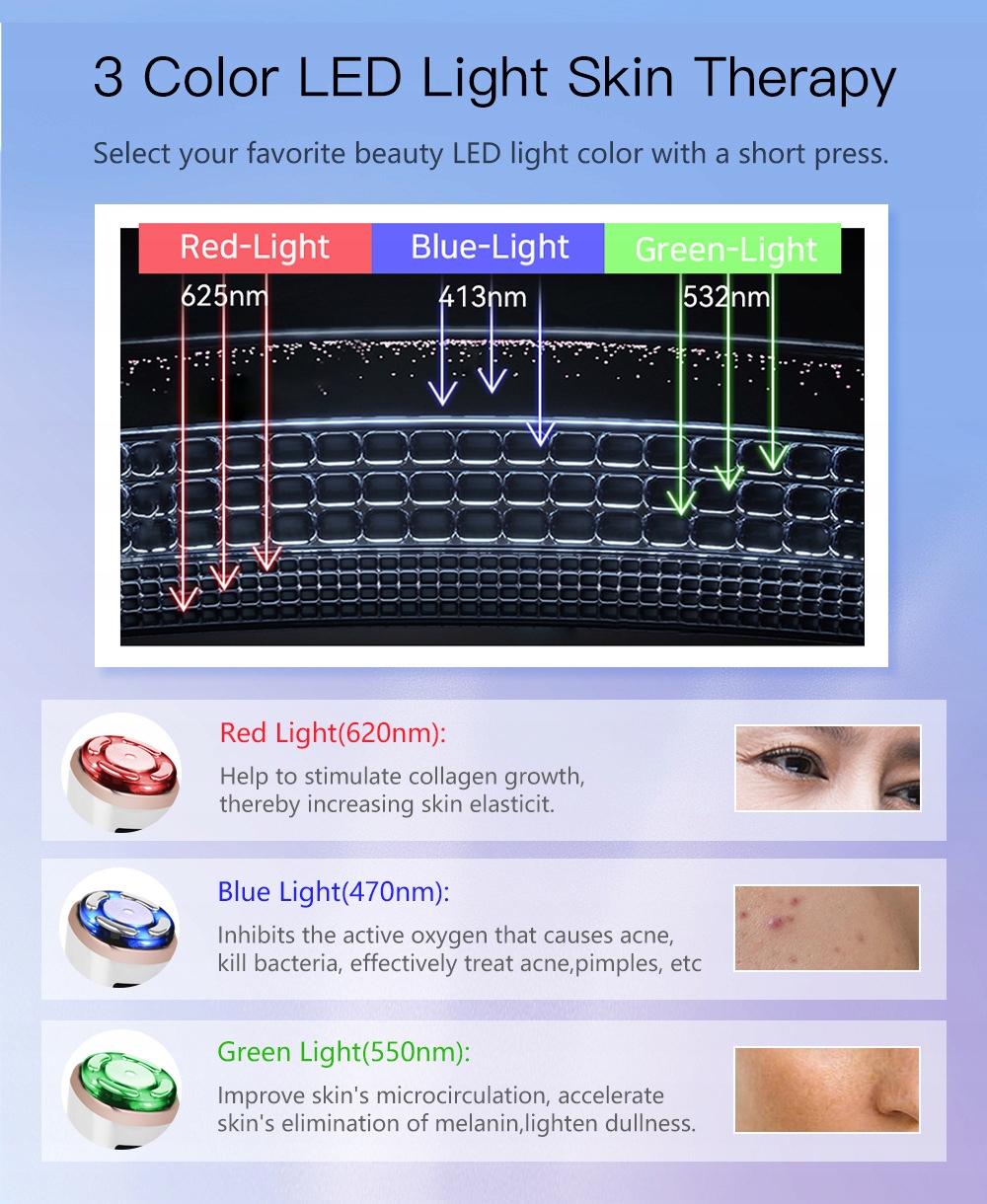 Масажер також використовує функцію синтезу колагену, що допомагає зміцнити та поновити шкіру.